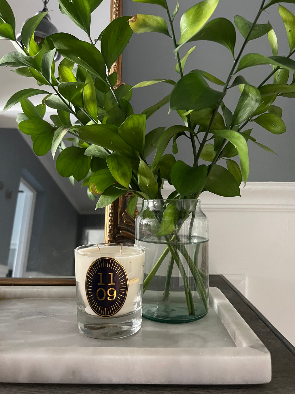 Vela aromática en vaso de 250ml. Hecha en Chile a base de Soya libre de GMO Mide 8,5 cm de diámetro y 9 cm de alto. 25-35 hrs de quemado.