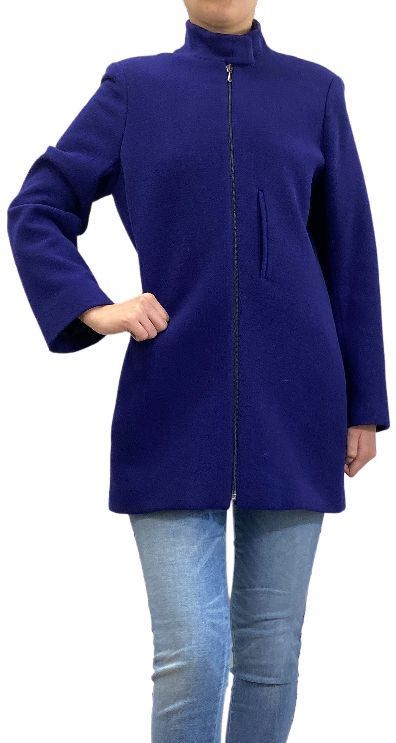 Abrigo color Azul de lana con bolsillos y cierre frontal. Talla 8 US.