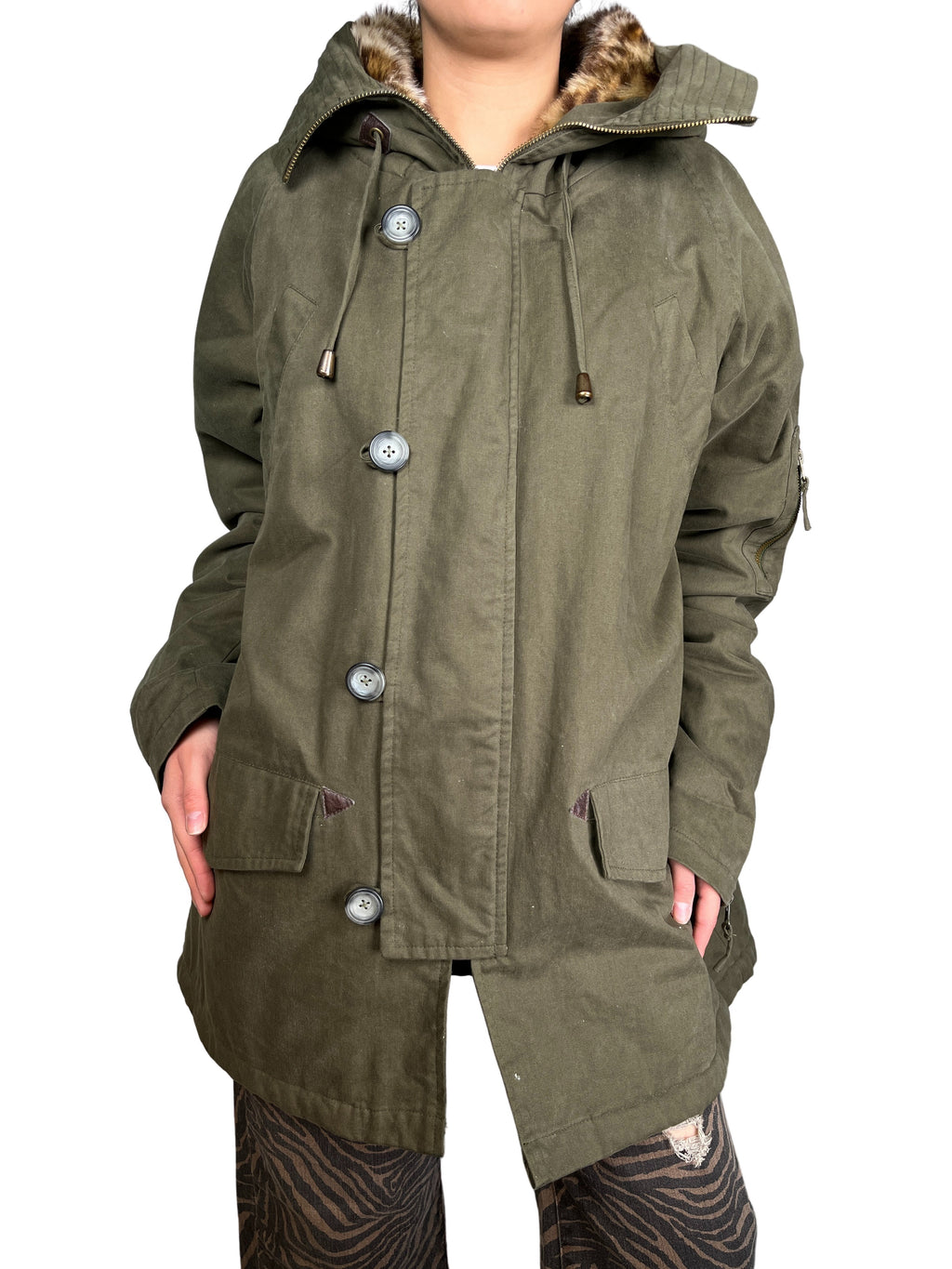 Abrigo Con Piel Artificial en Capucha