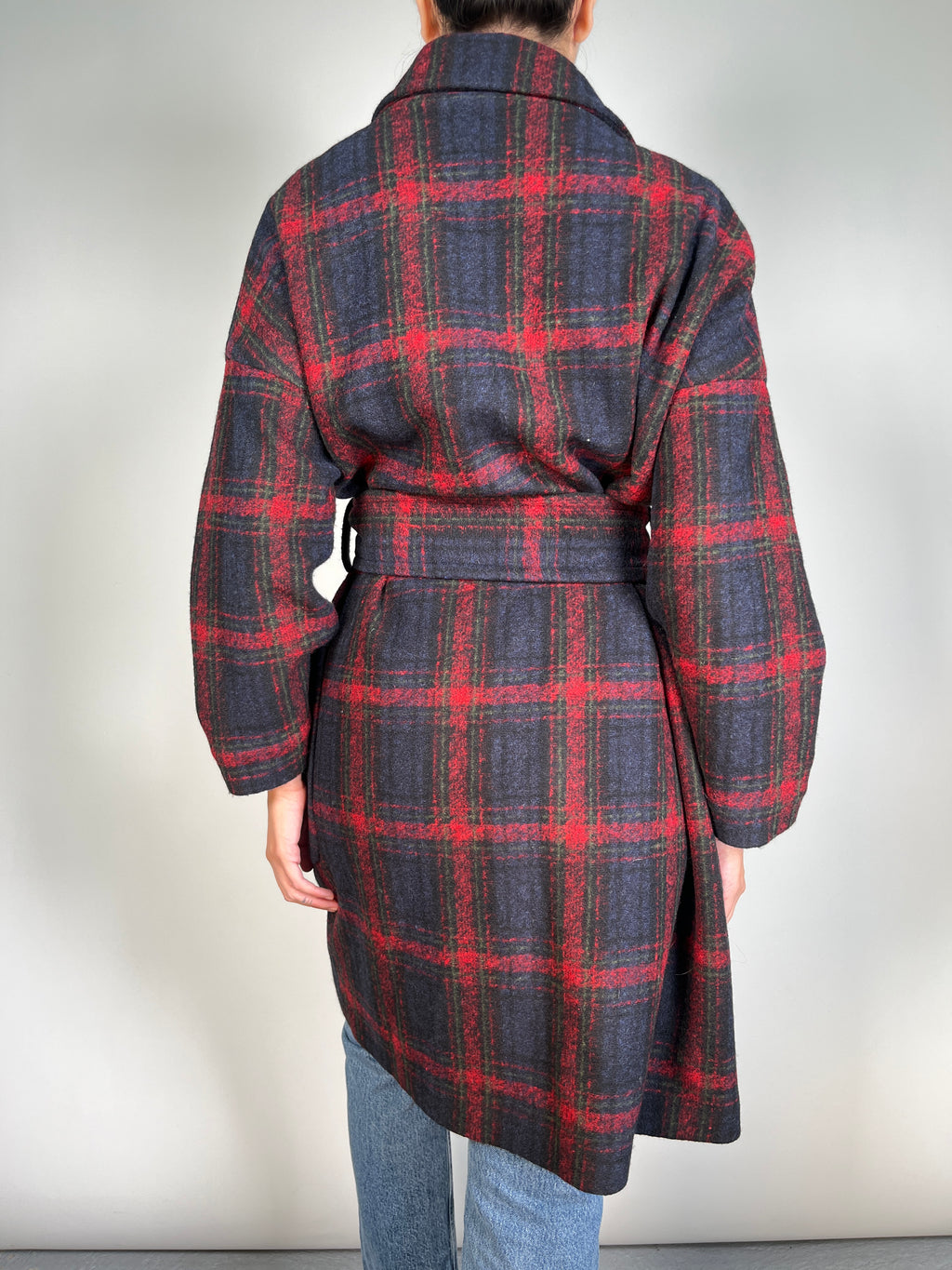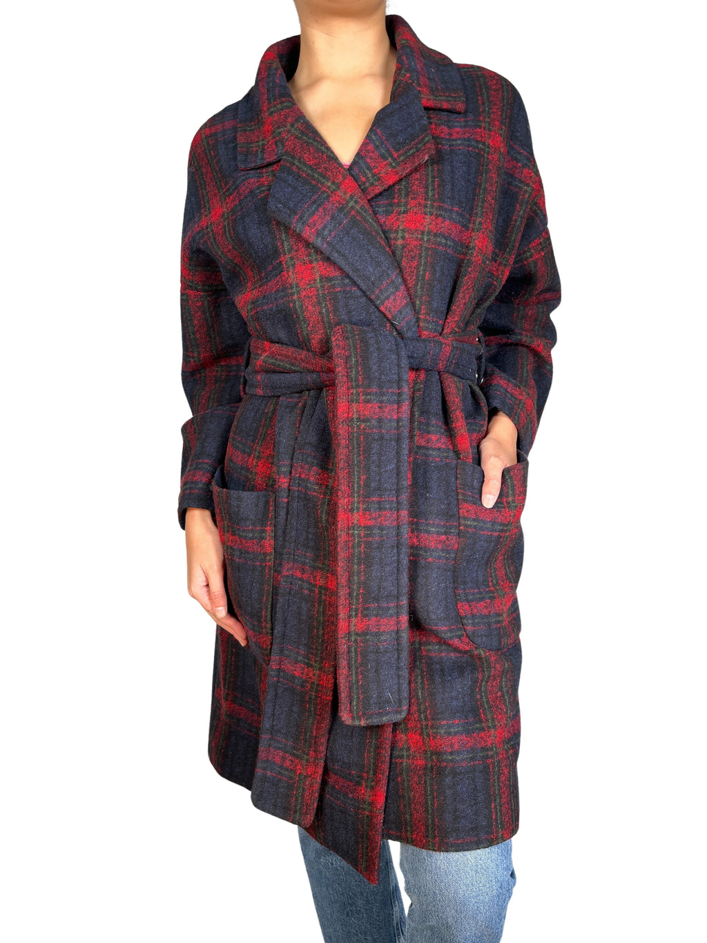 Abrigo a cuadros en Multicolor, con dos bolsillos frontales y lazo en cintura. Talla 1 de la marca.