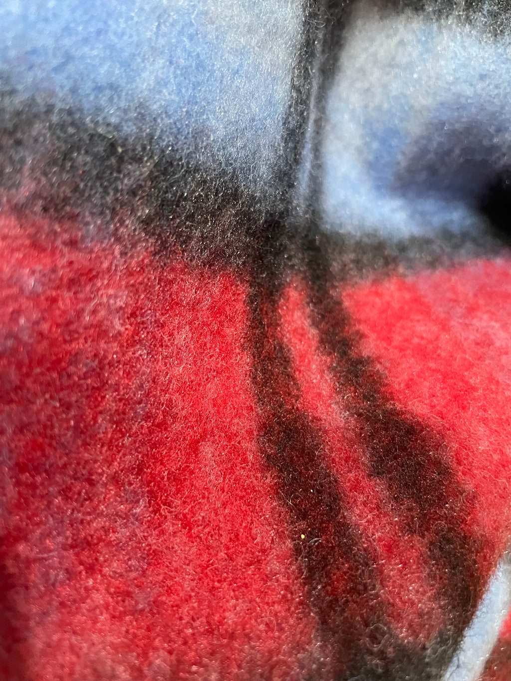 Abrigo lana con diseño de cuadros, bolsillos en delantero y capucha con ruedo de polar. Talla 40/1 de la marca.
