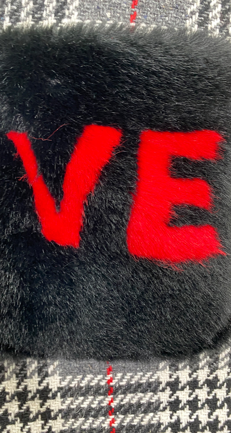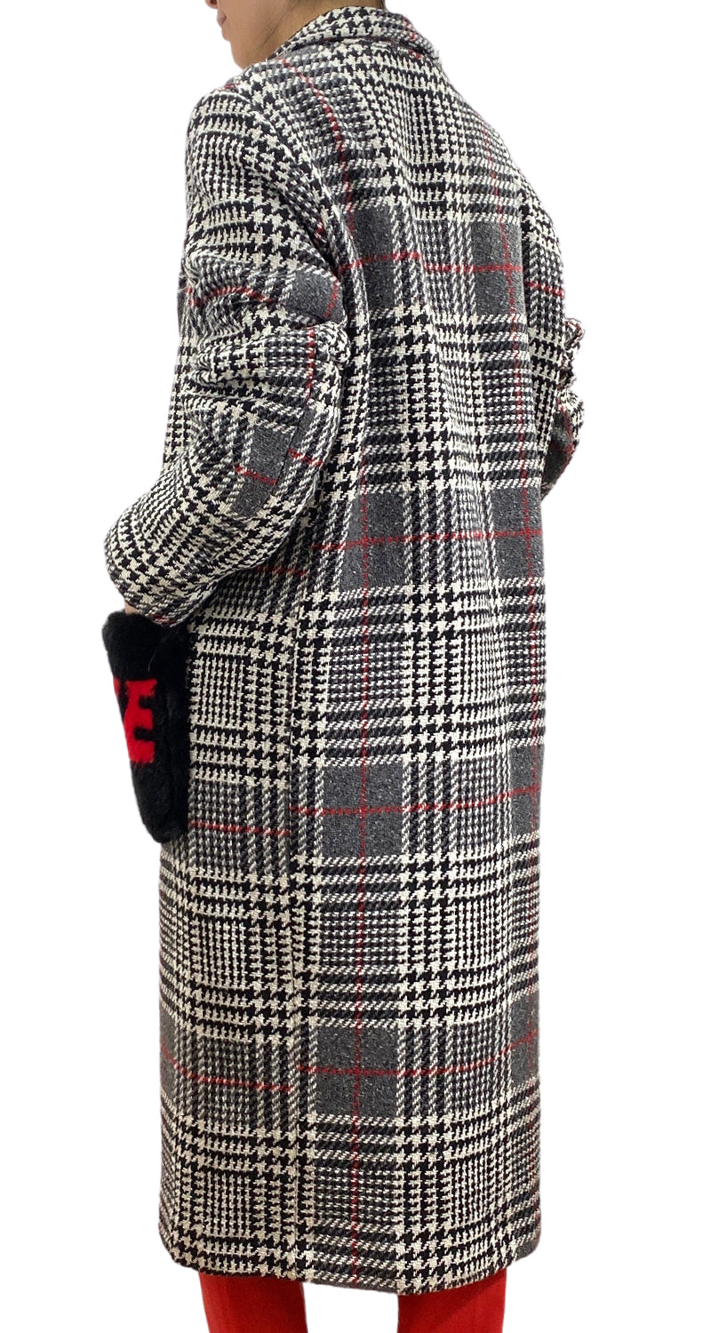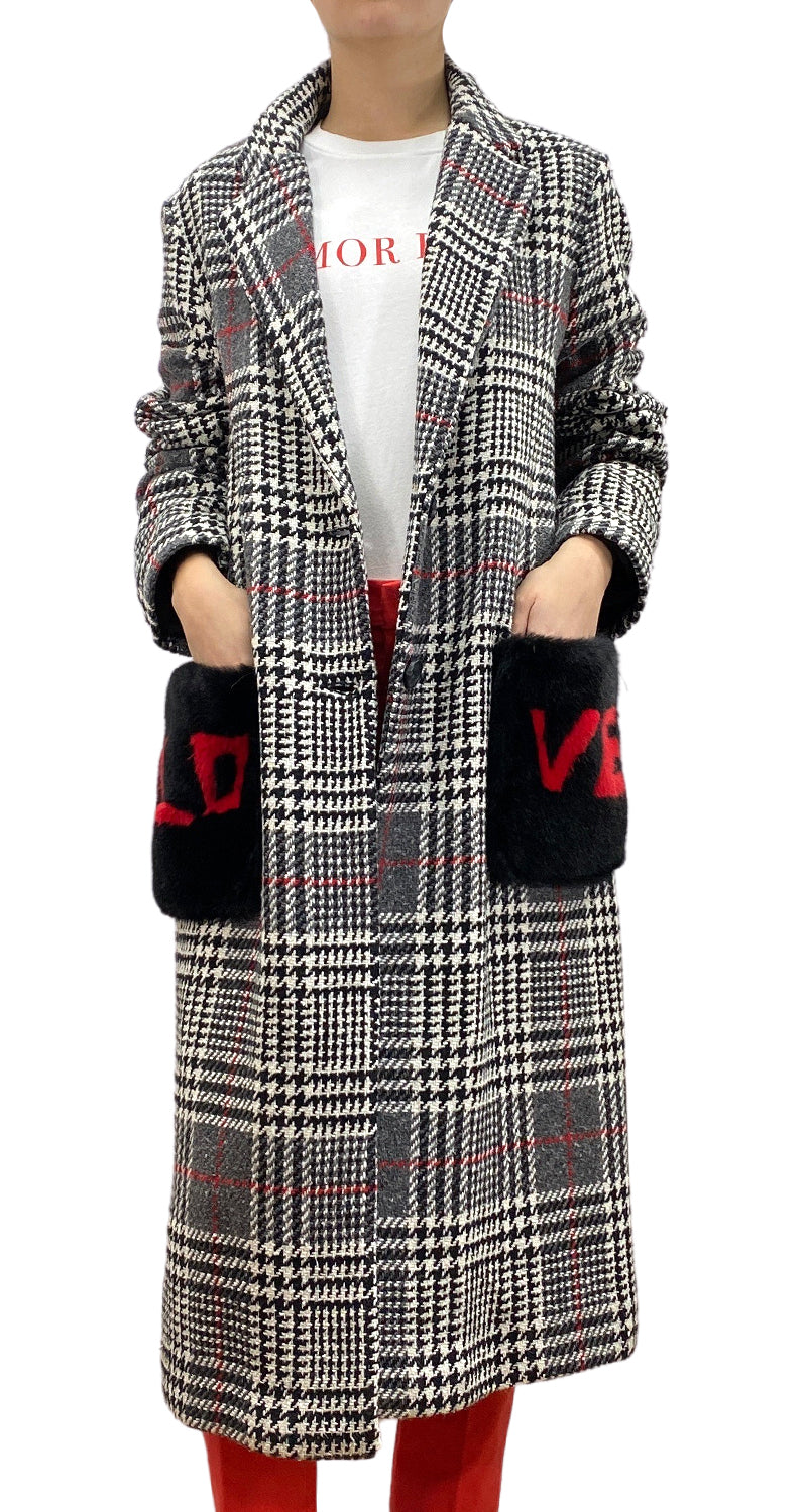 Abrigo estampado pata de gallo, con bolsillos sobrepuestos con diseño de letras en color Rojo. Talla 44 de la marca.