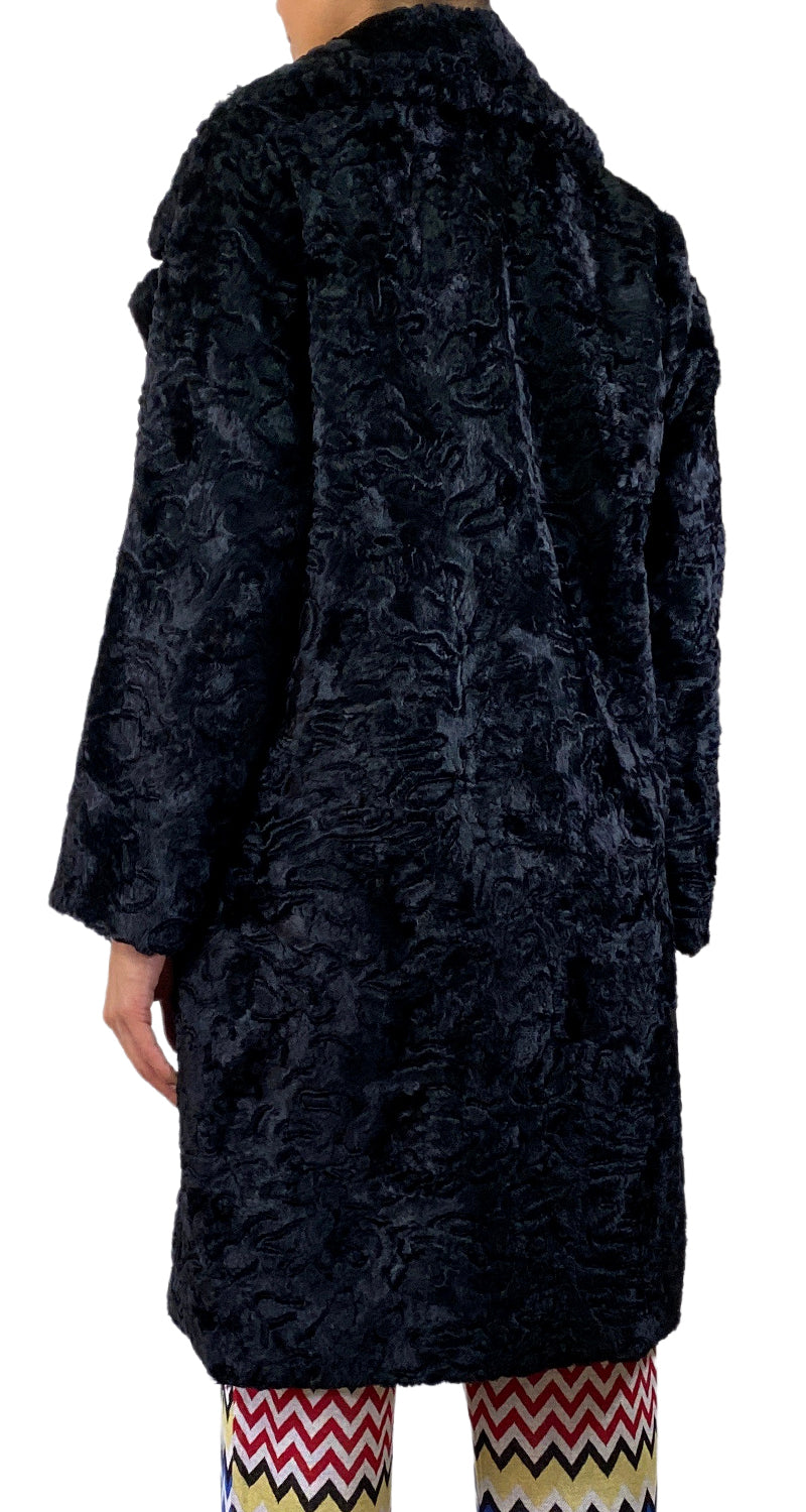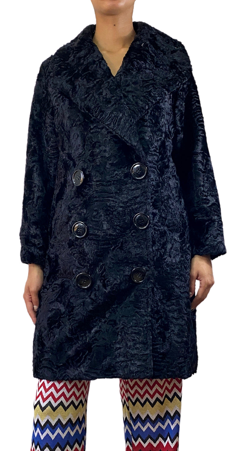 Abrigo color Negro largo con diseño de botones dobles en delantero, talla 1 de la marca. Altura modelo 1.68.