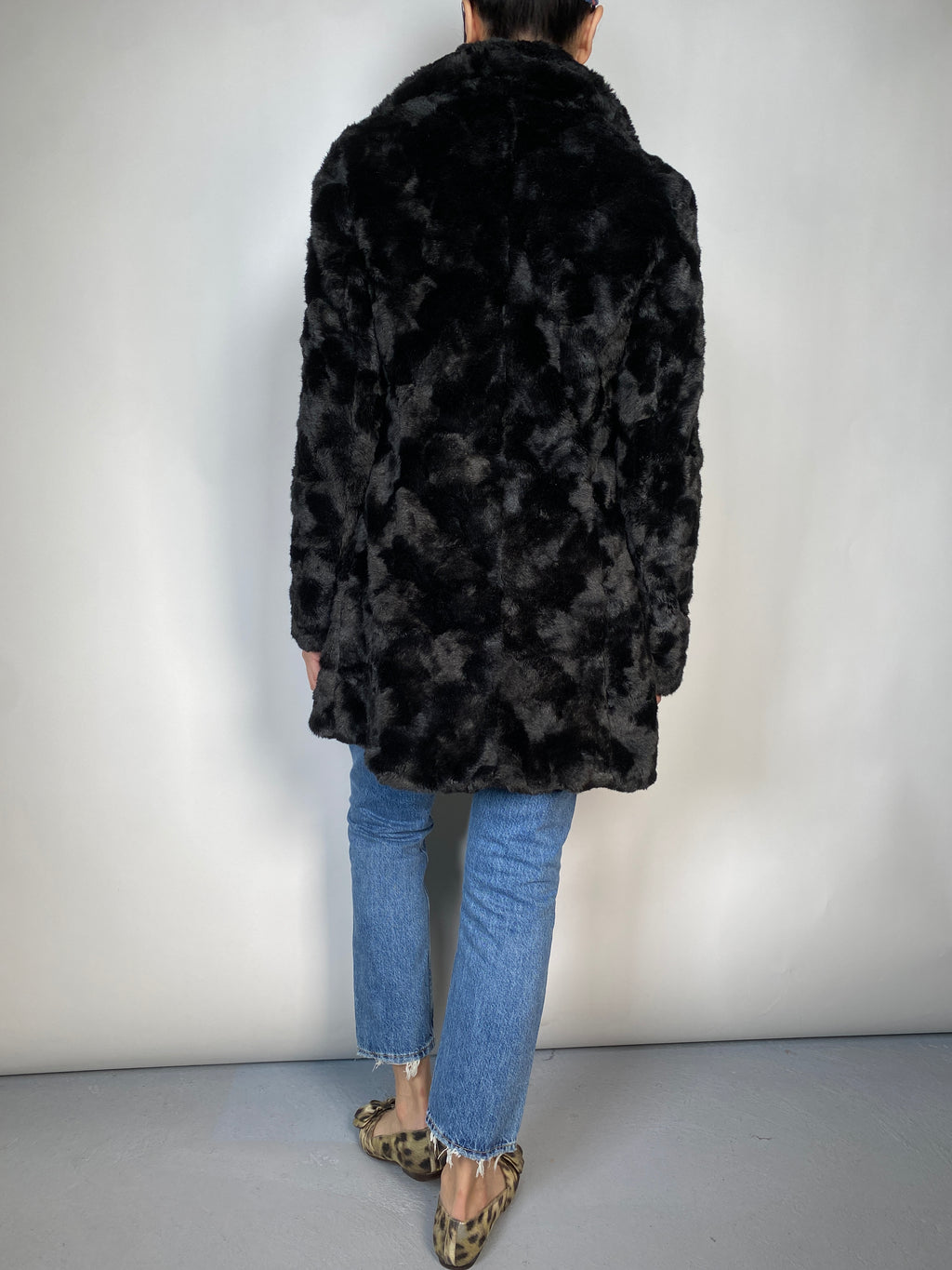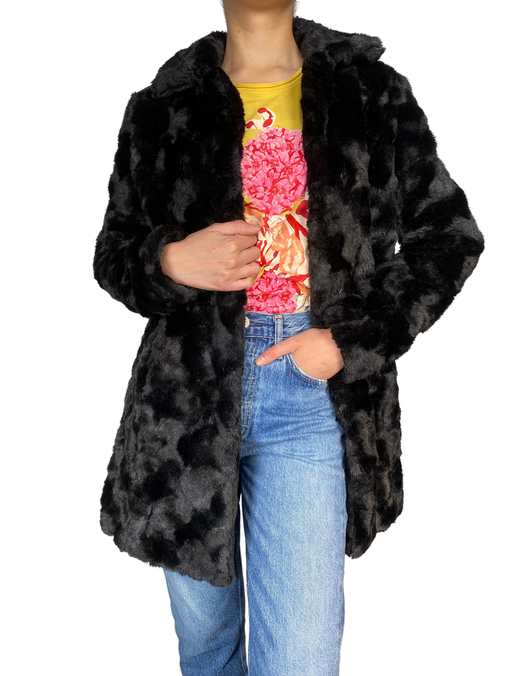 Abrigo color Negro de piel sintética con broches de cierre en delantero y bolsillos. Talla 40 de la marca.