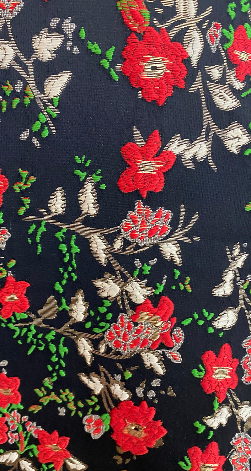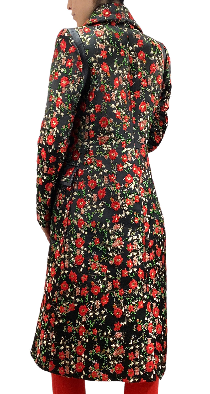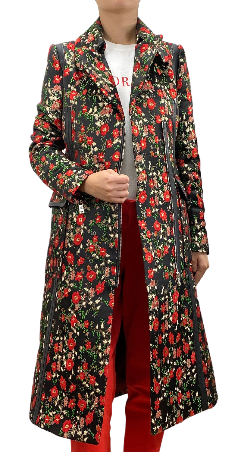 Abrigo jacquard con diseño de flores, bolsillos frontales y cierre metalizado. Talla 1 de la marca.