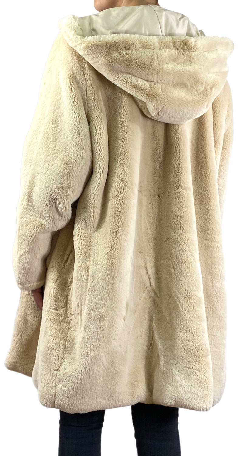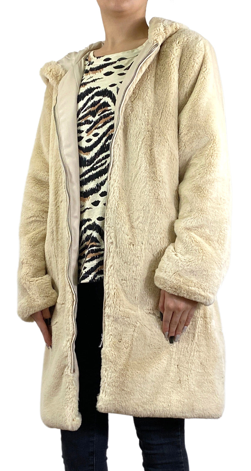 Abrigo de piel con cierre y bolsillos en delantero. Talla M. Altura de modelo 1,68.