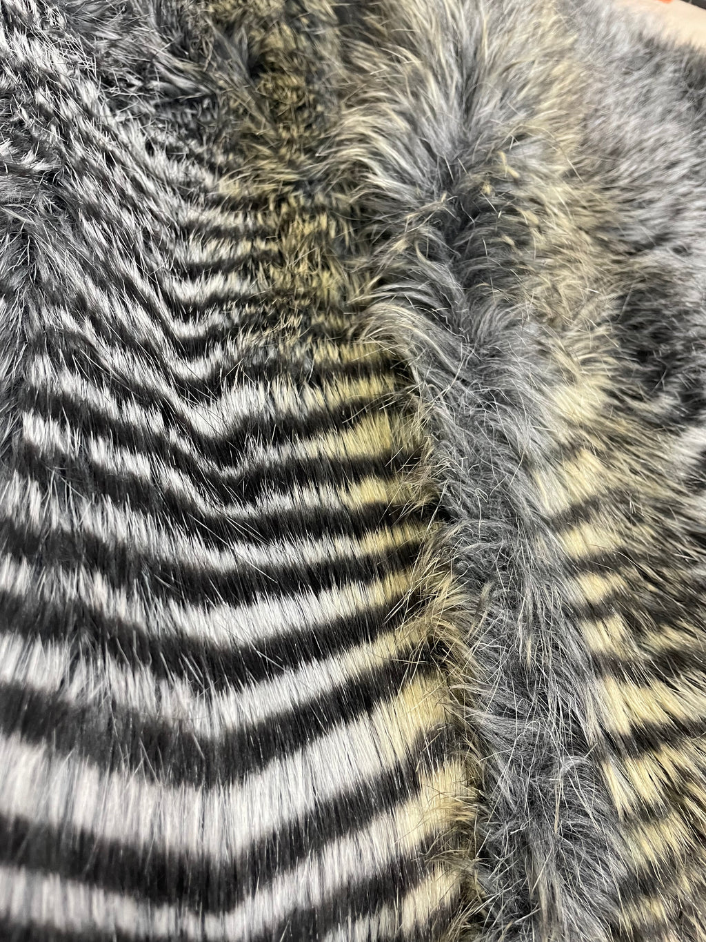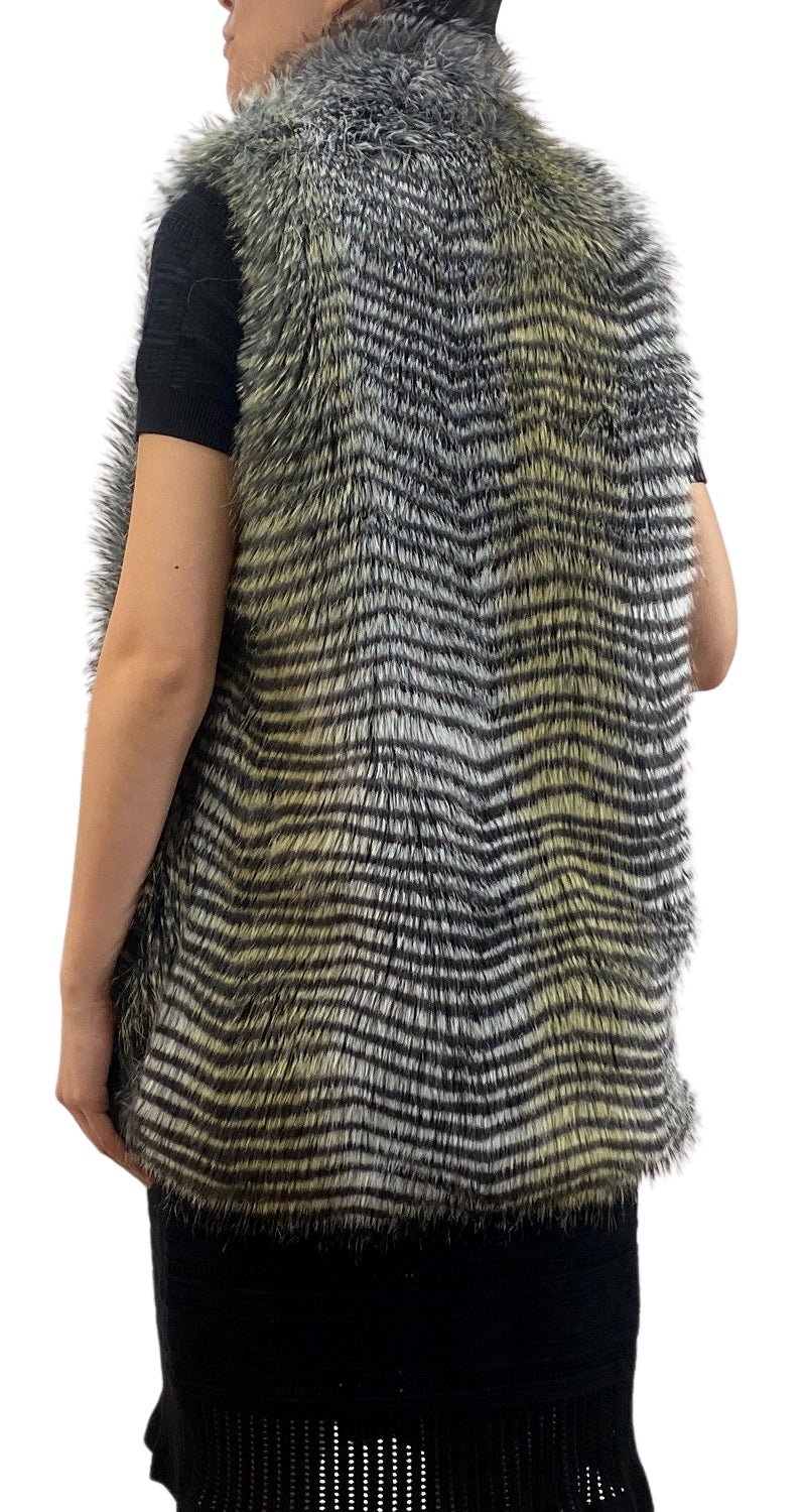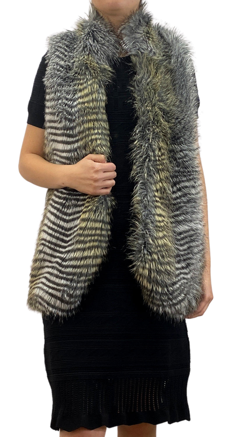 Abrigo sin mangas de piel sintética en tonos Gris, Negro y Beige.
