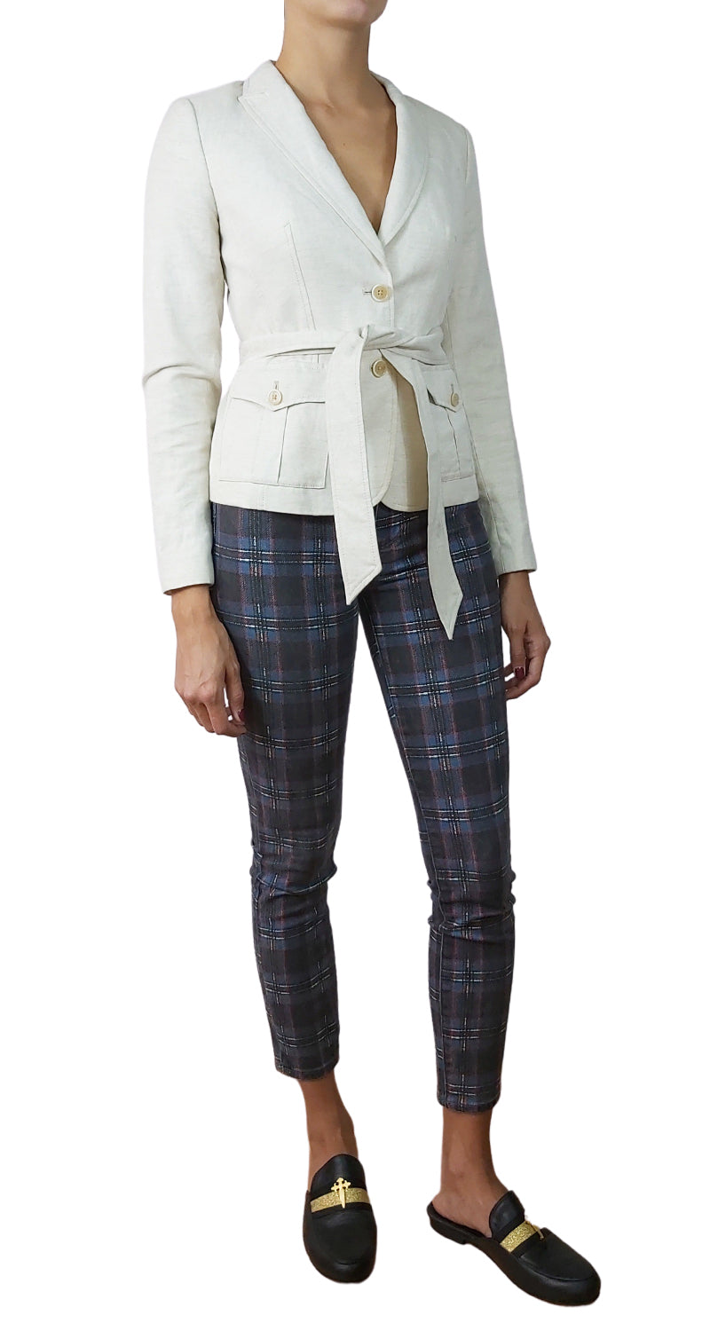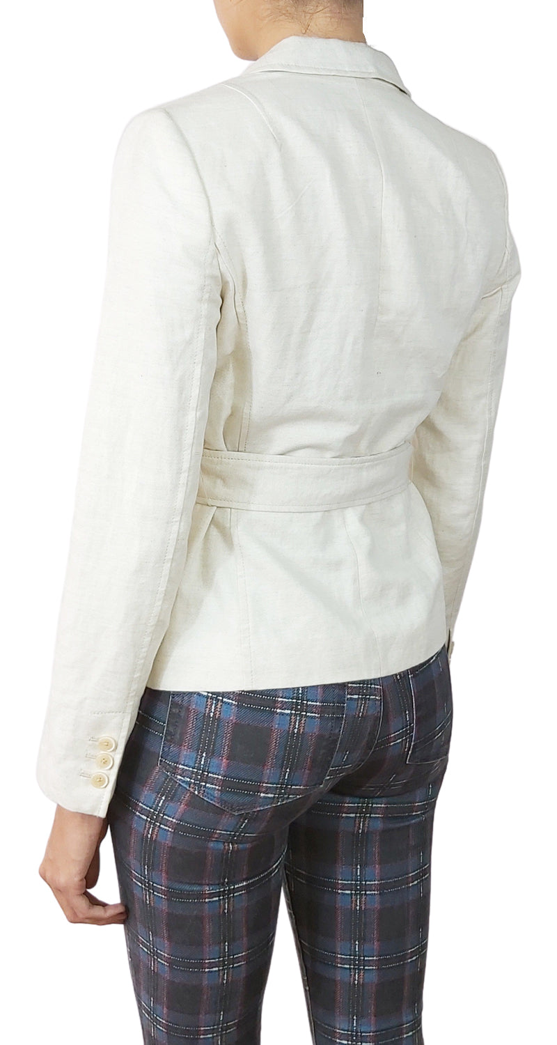 Blazer color Blanco con cinturón y botones Beige. Talla 2 de la marca.