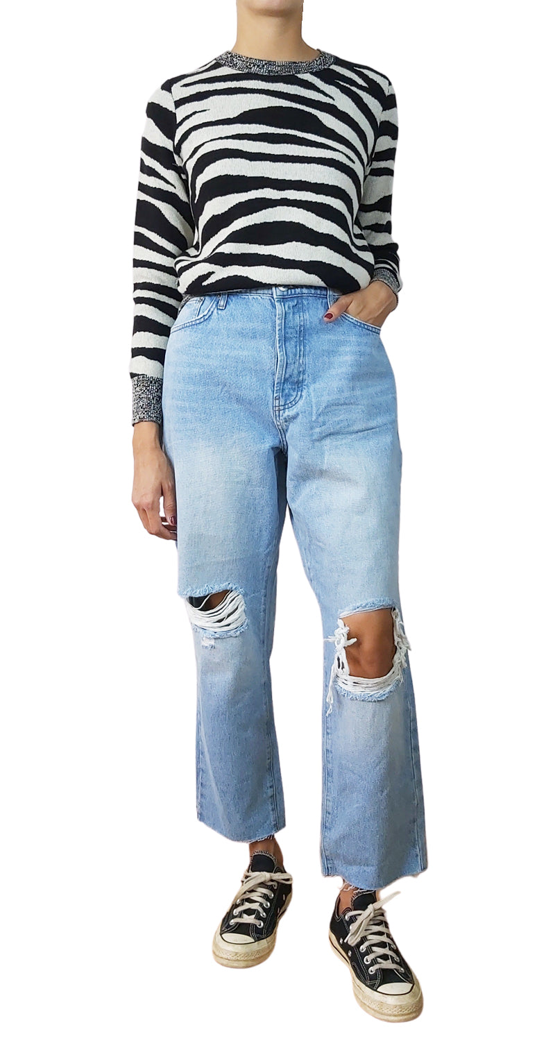 Sweater con diseño de cebra cuello redondo. De Lana.