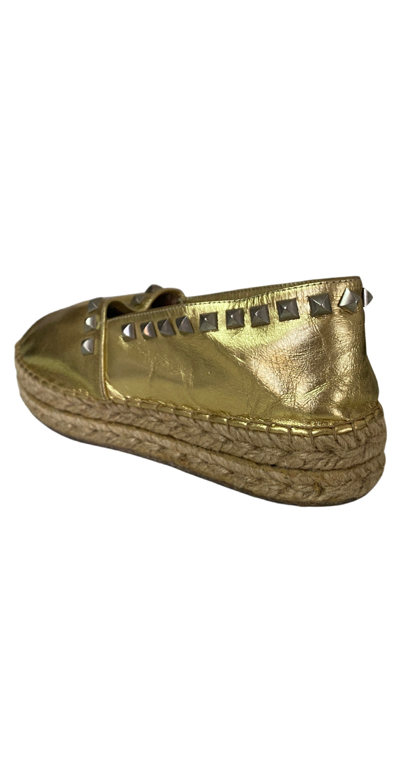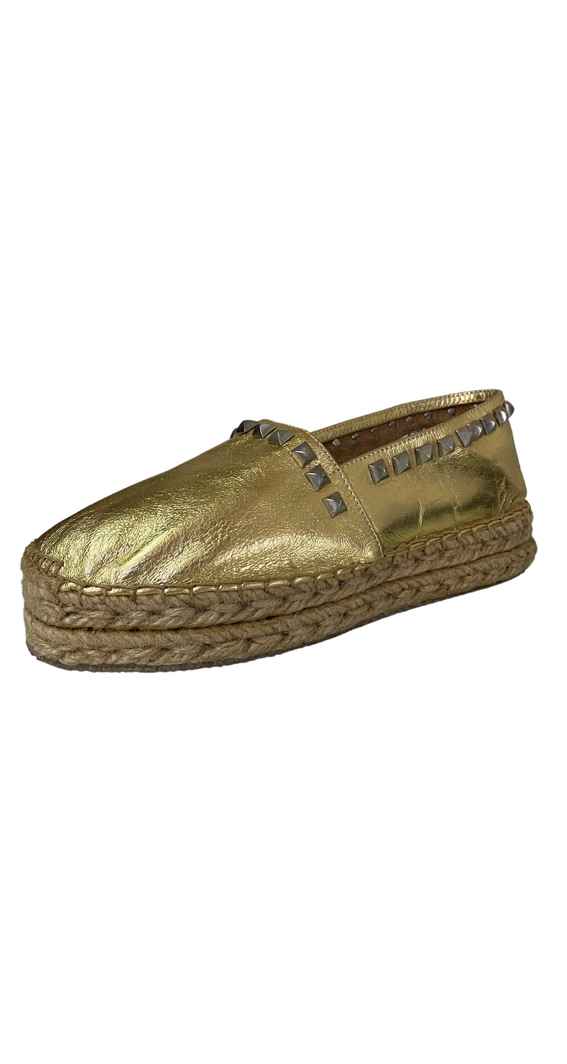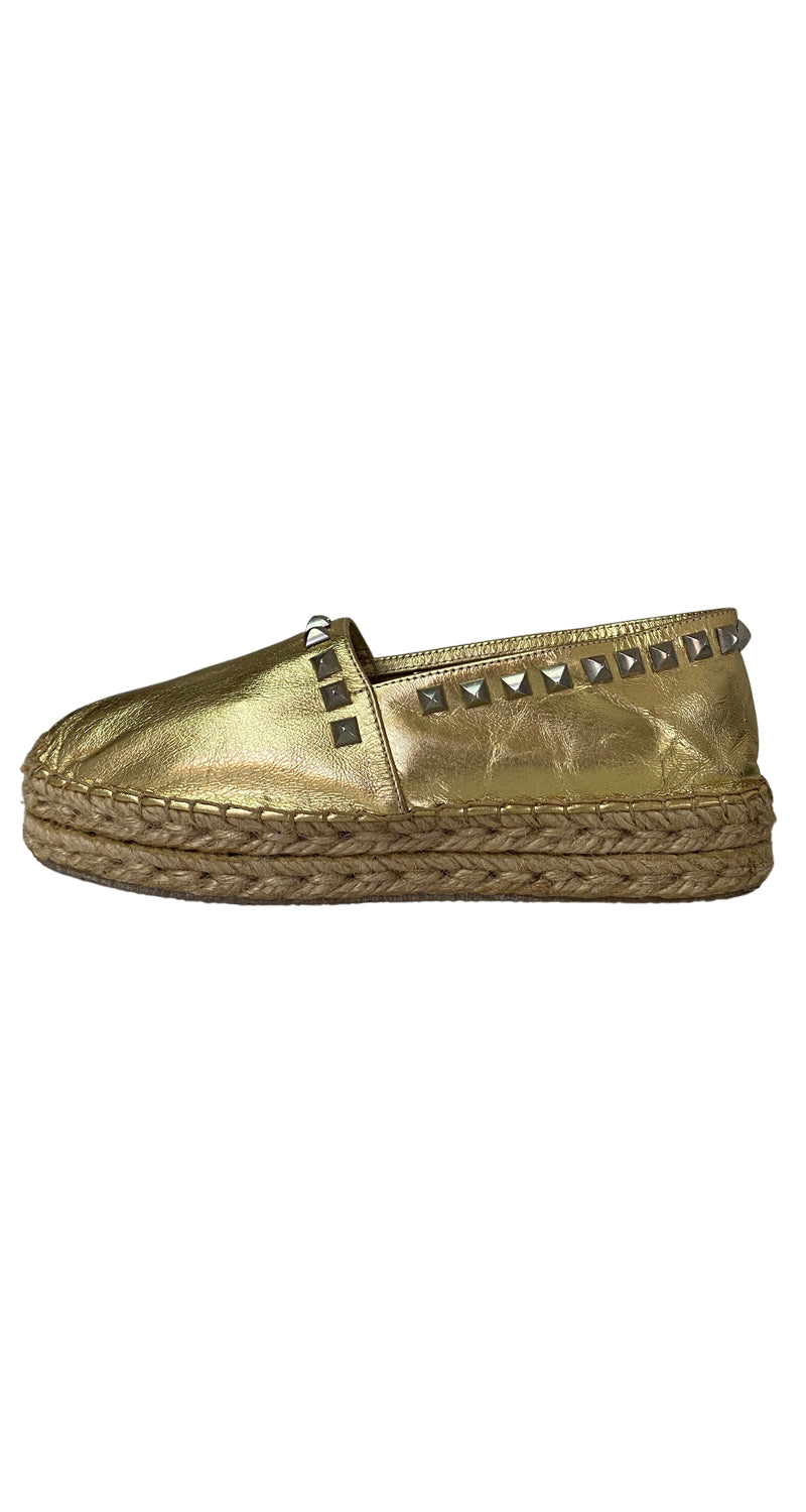 Alpargatas color Dorado con apliques de tachas. Talla 9 de la marca.