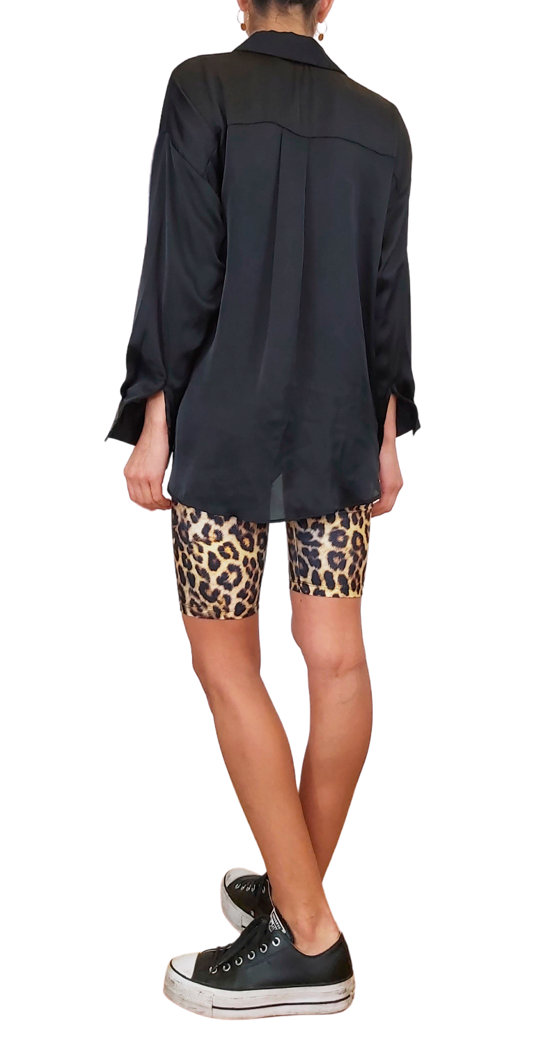 Camisa color Negro con mangas largas, oversize con botones forrados.