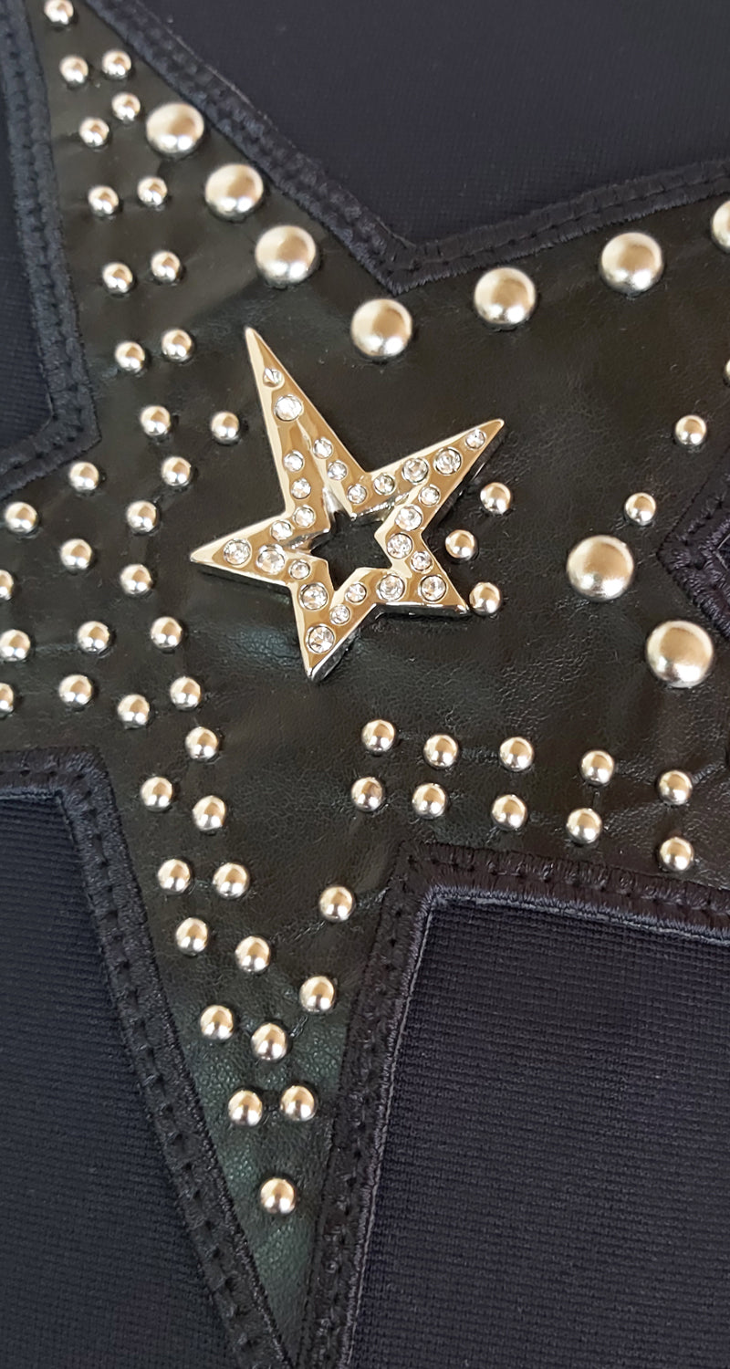 Chaqueta negra corta con detalle de tachas y bolsillos en delantero.