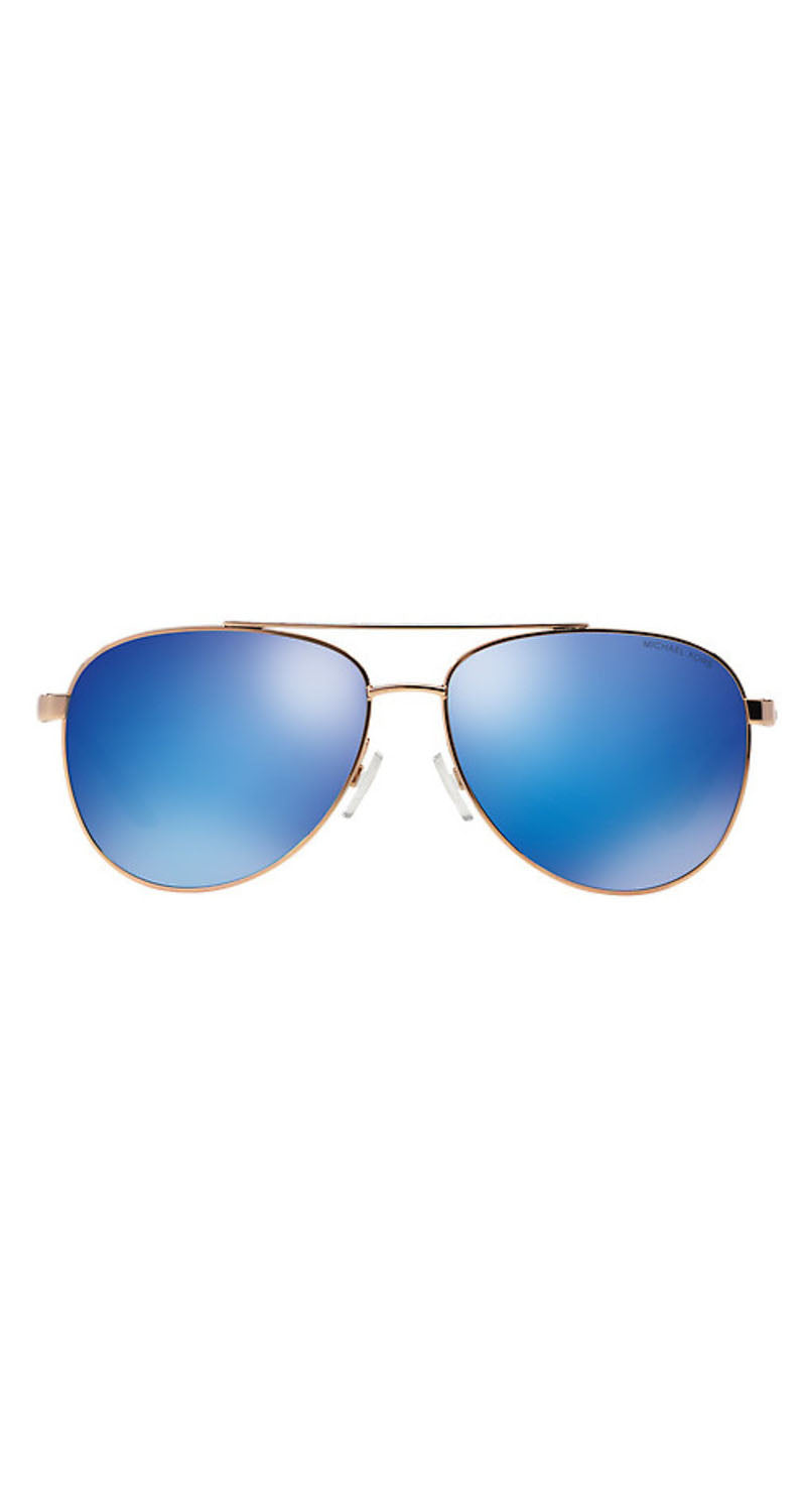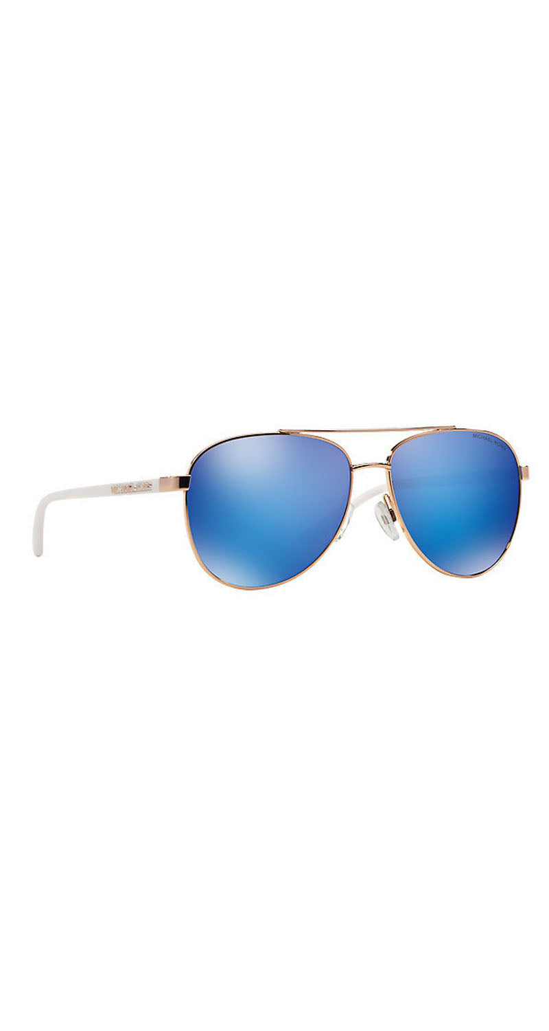 Anteojos con lentes Azules y montura metalizada, con soporte color Blanco. Incluye funda limpiadora y estuche protector.
