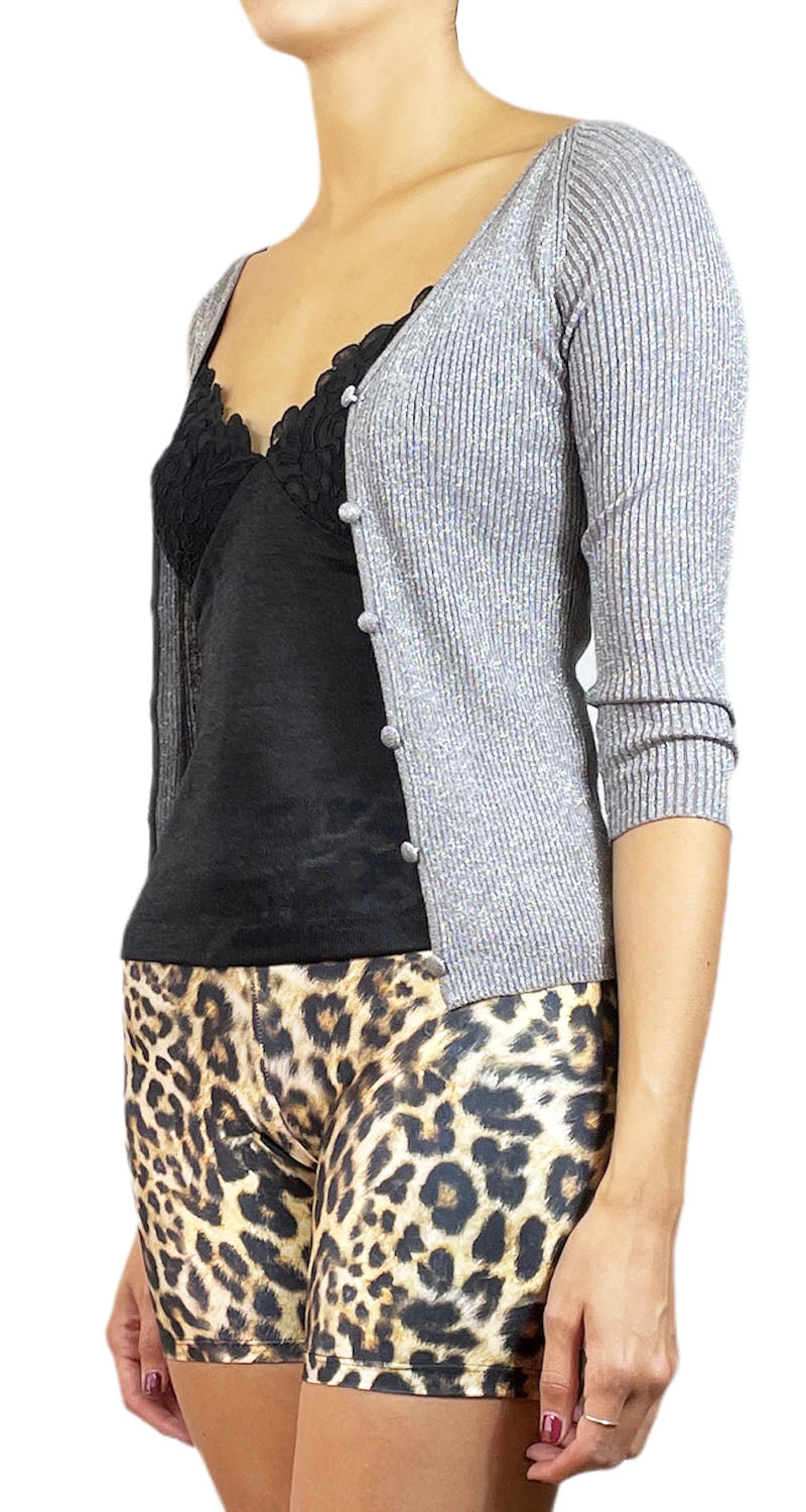Chaleco botones Gris con fibras metalizadas y botones en delantero.