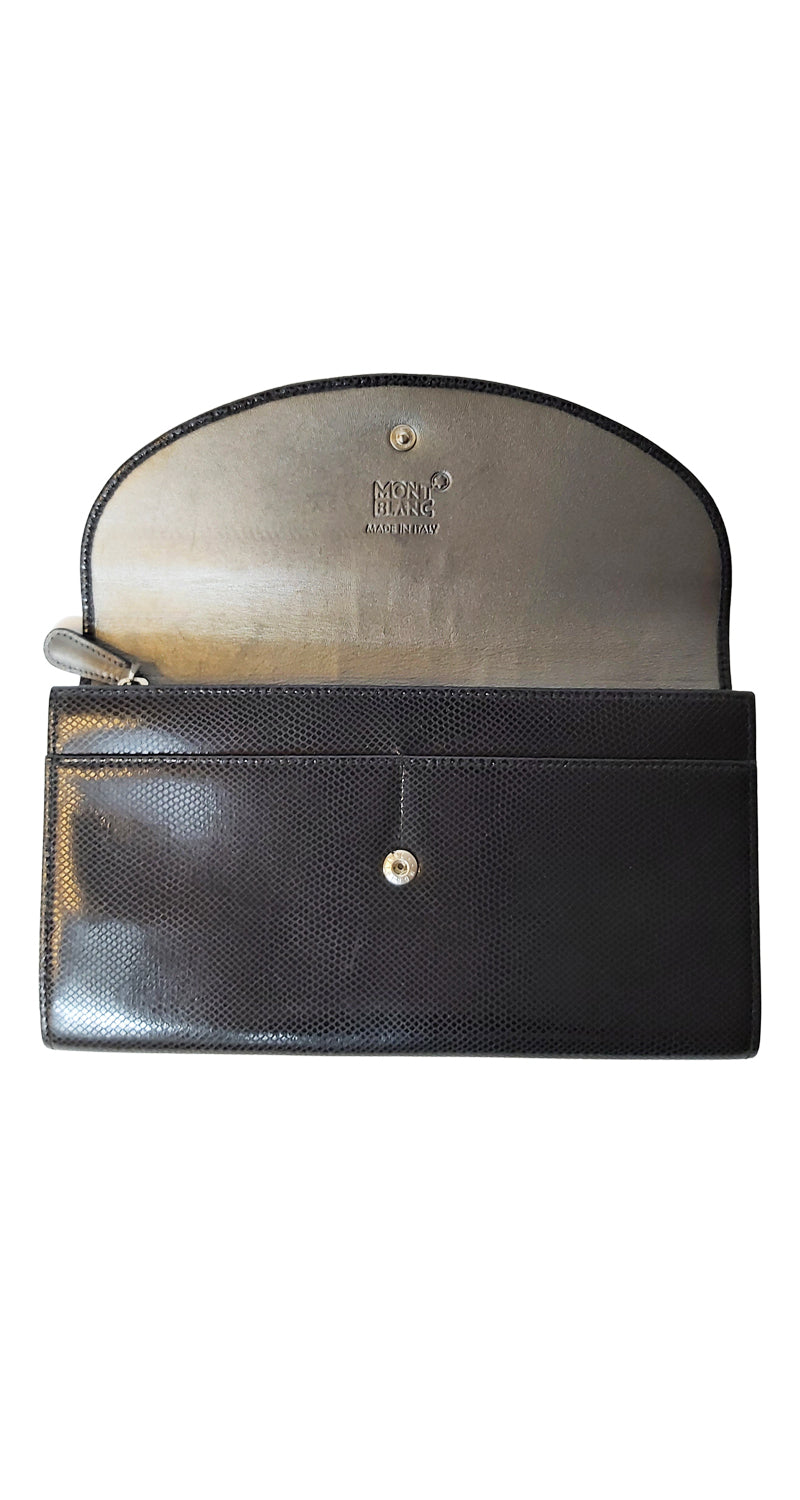 Billetera color Negro texturizado, con múltiples compartimentos en interior. Forma de cierre broche a presión. Medidas: 19 cm x 11 cm x 2 cm. Hecha en Italia.