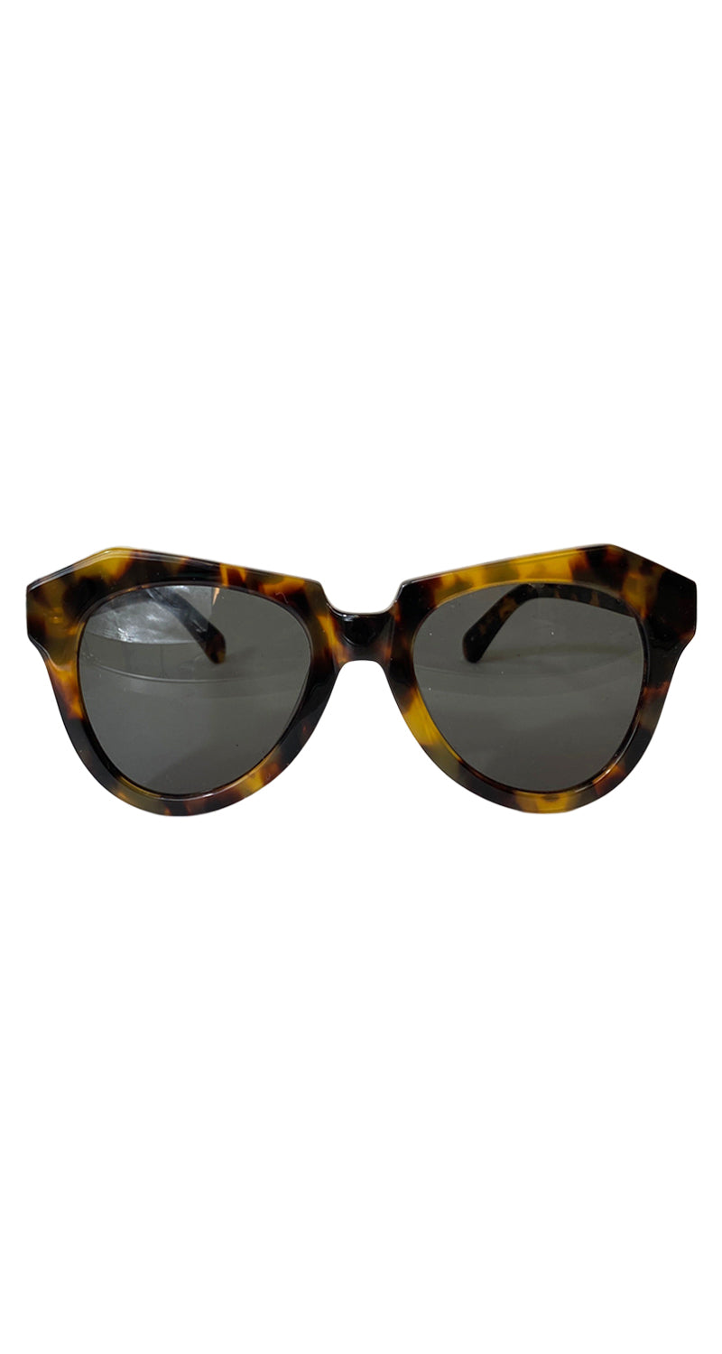 Anteojos con montura estilo carey, detalle de flechas propias de la marca en soporte. Incluye estuche protector. Presenta moderados signos de uso.