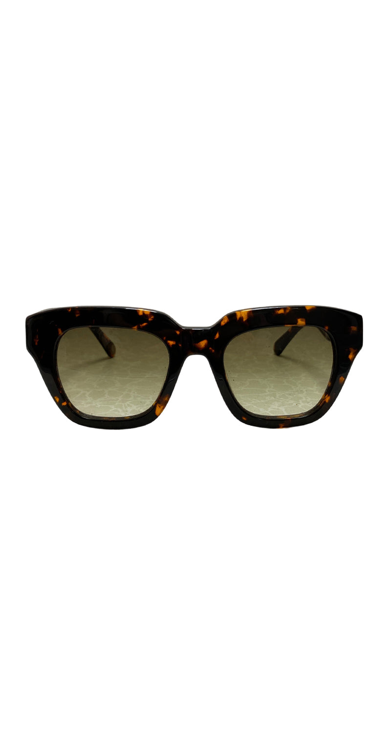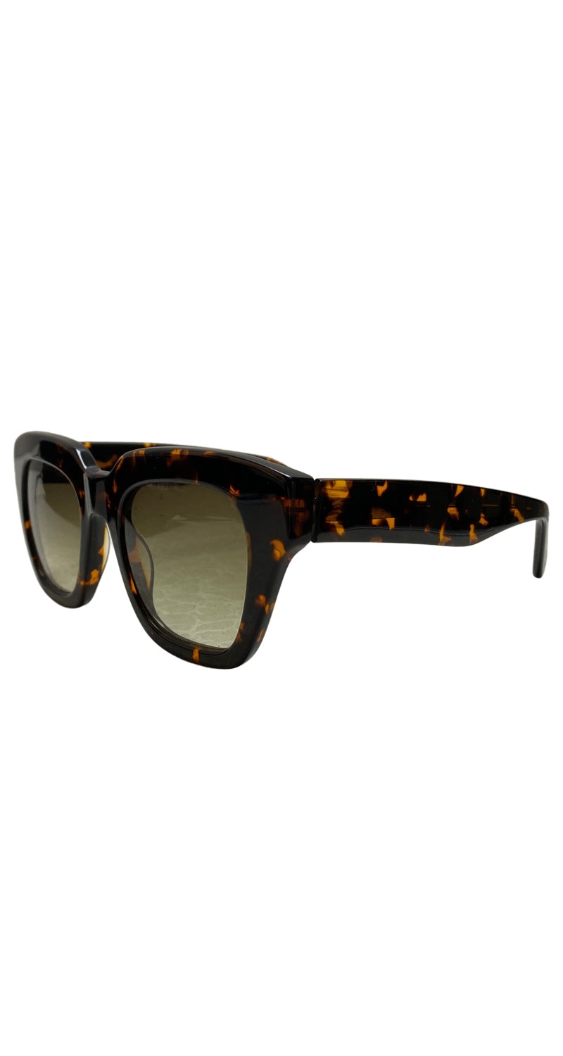 Anteojos cuadrados estilo carey con lentes degradados. Incluye estuche protector. Presenta signos de uso.