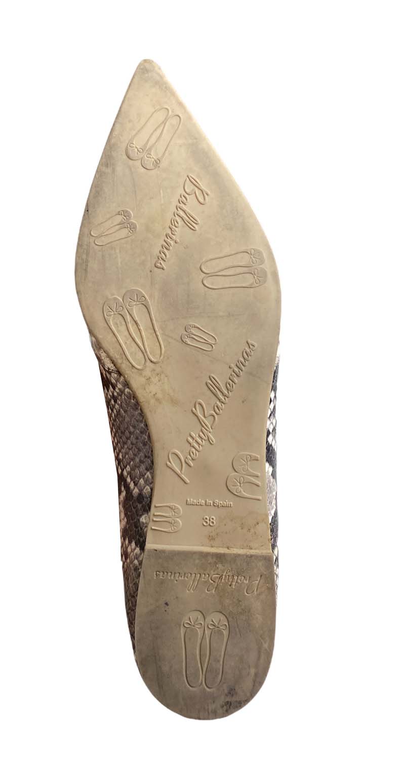 Bailarinas de Cuero en punta con diseño Snake en tonos Blanco y Negro. Signos de uso en suela e interior.
