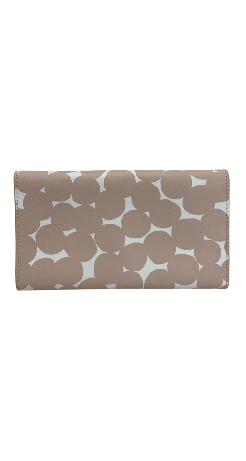 Billetera en color Blanco y Rosa Palo con múltiples ranuras al interior. Medidas: 11 x 19 x 2 cm