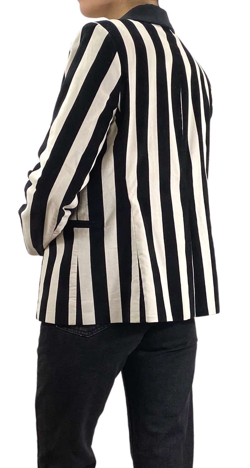 Blazer de rayas en color Blanco y Negro, con dos bolsillos y un botón en delantero. Talla 2 de la marca.