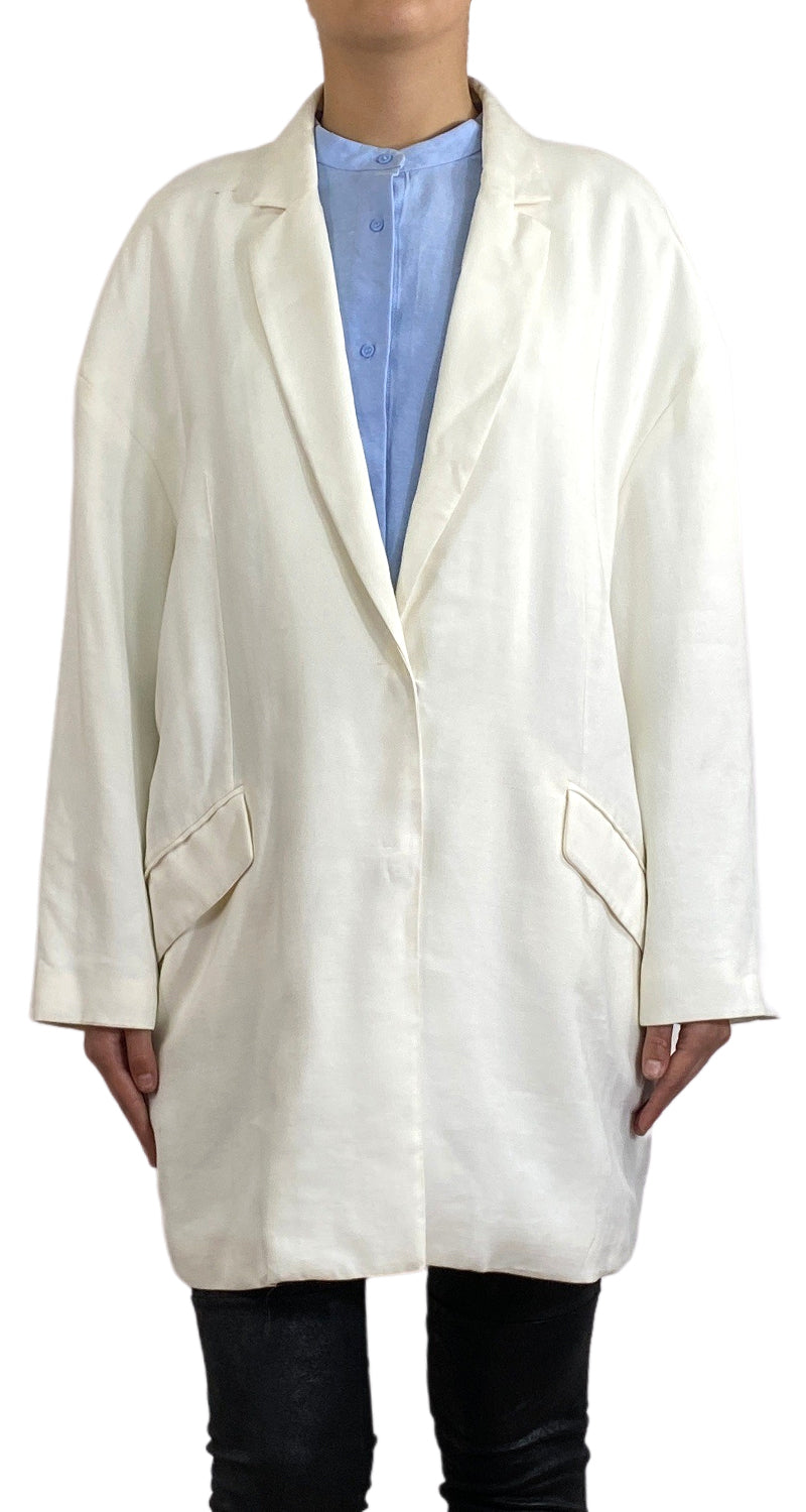 Blazer color Crema con bolsillos en delantero, cierra con broches.