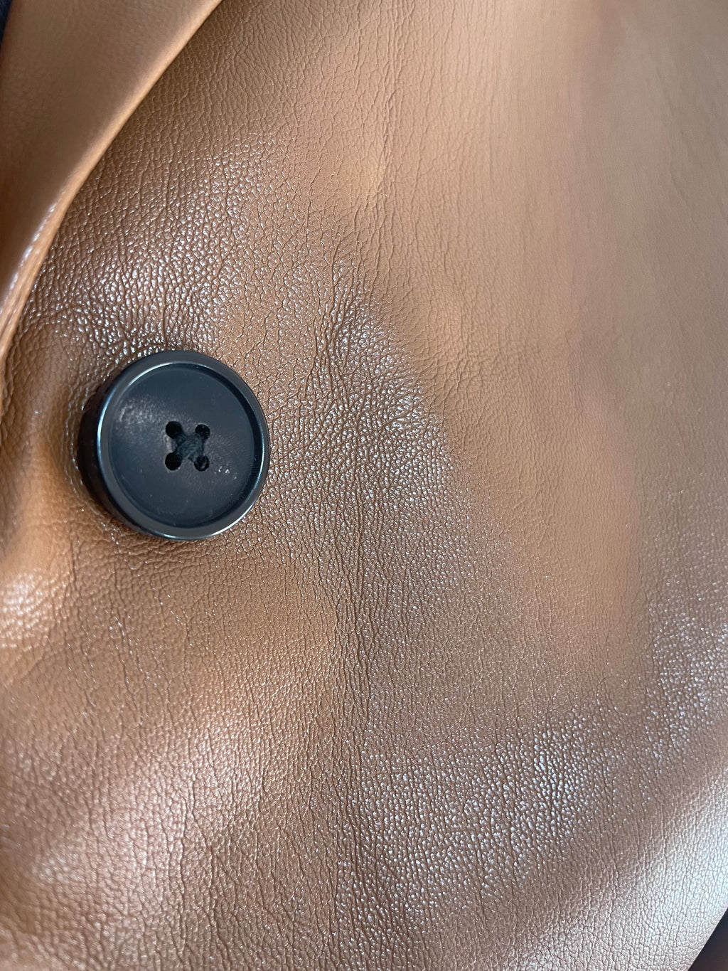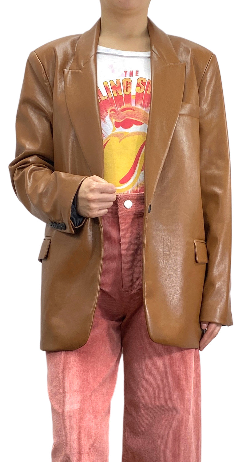 Blazer de Ecocuero en color Café, tres bolsillos y un botón en delantero.