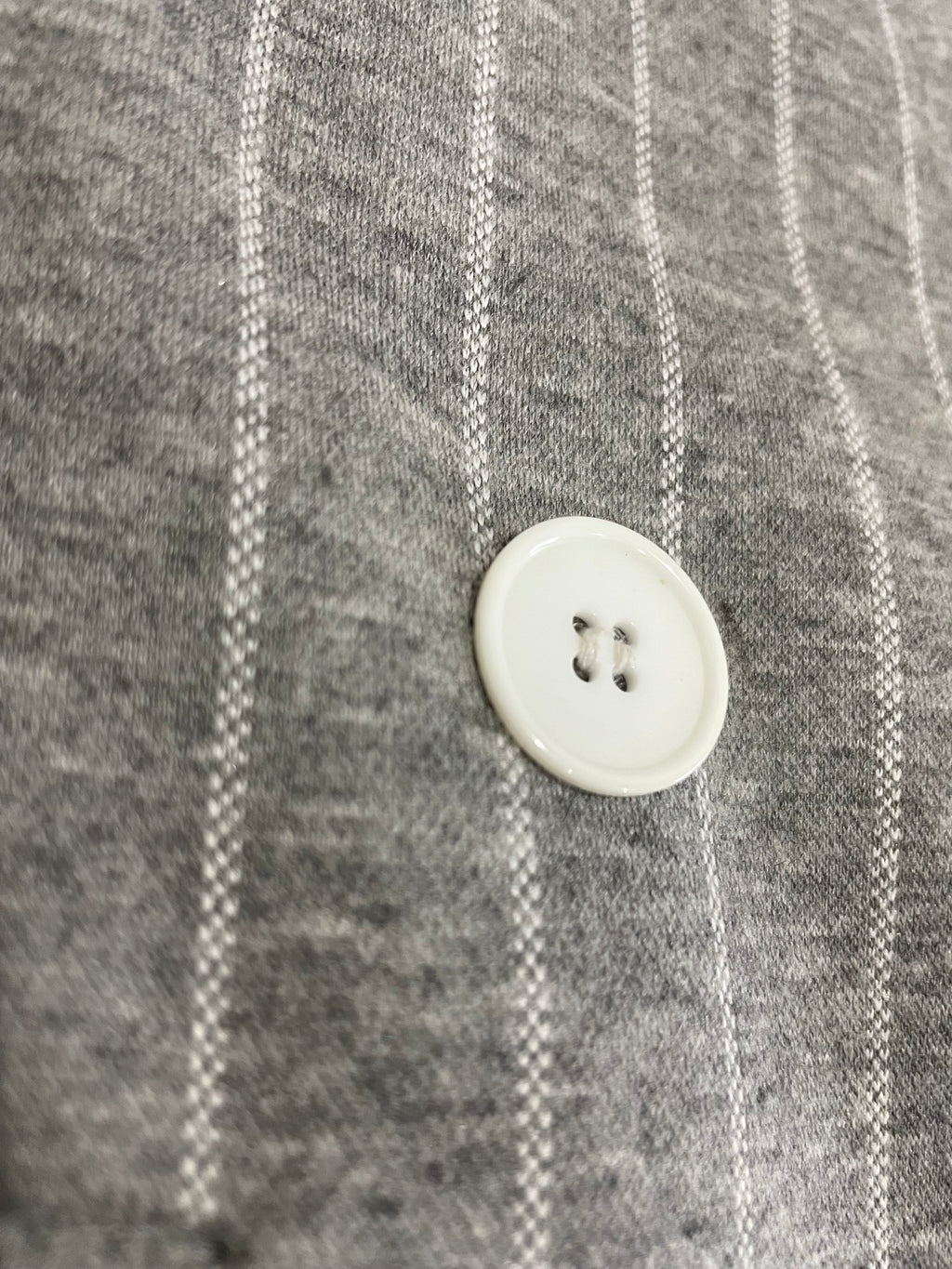 Blazer color Gris con rayas Blancas, dos bolsillos y dos botones en delantero. Talla 4 US de la marca.