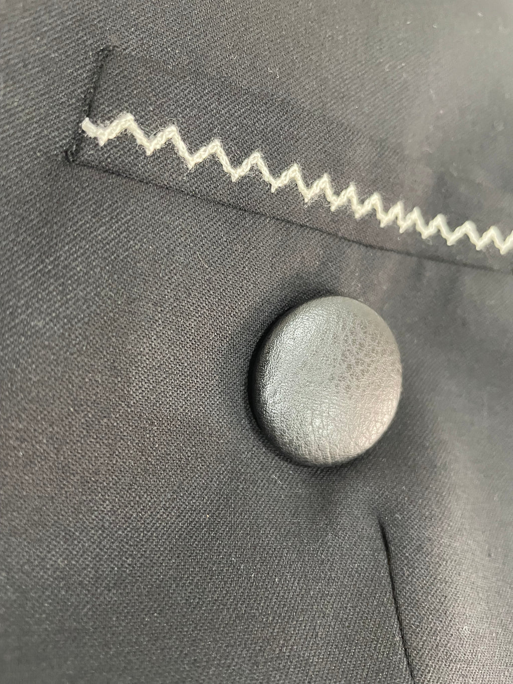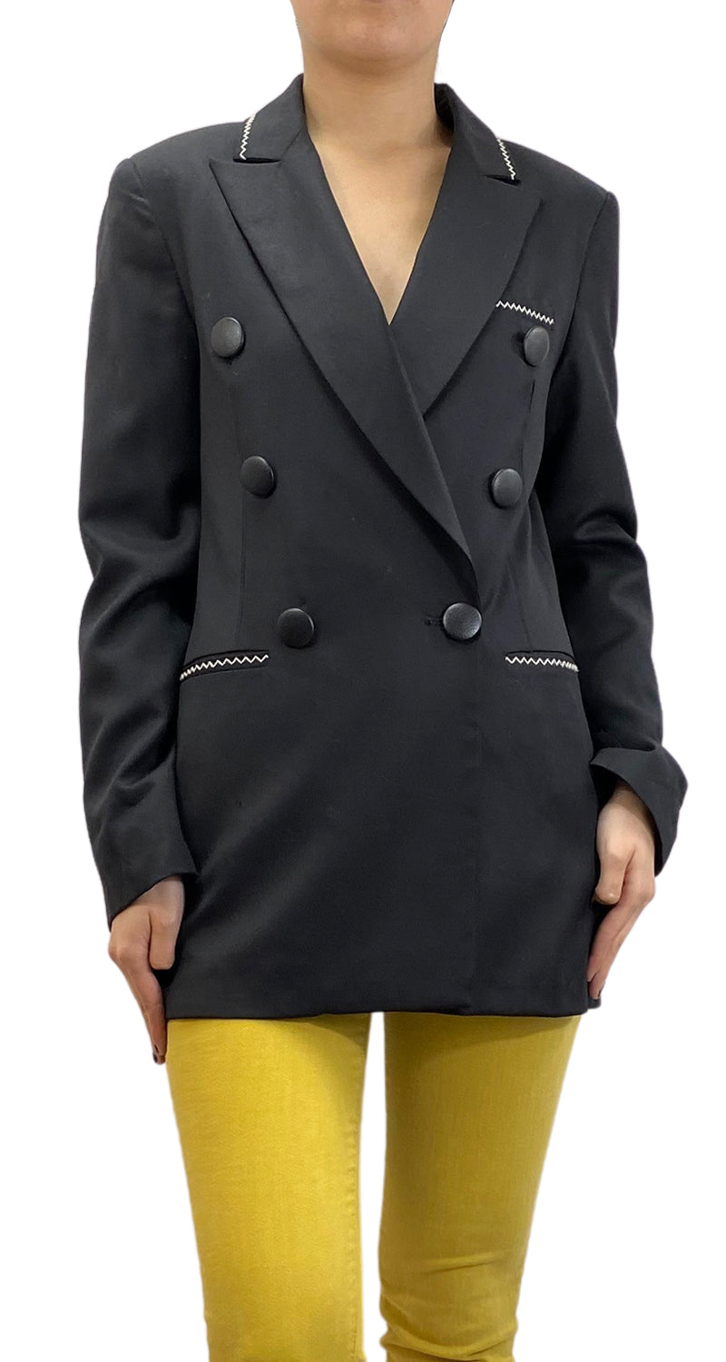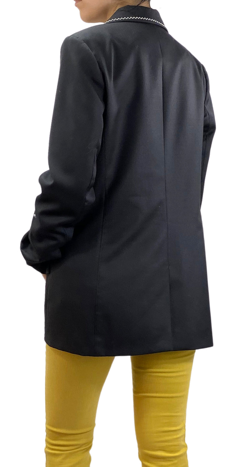 Blazer color Negro con detalles bordado en zig zag Blanco, seis botones en delantero. Talla 1 de la marca.