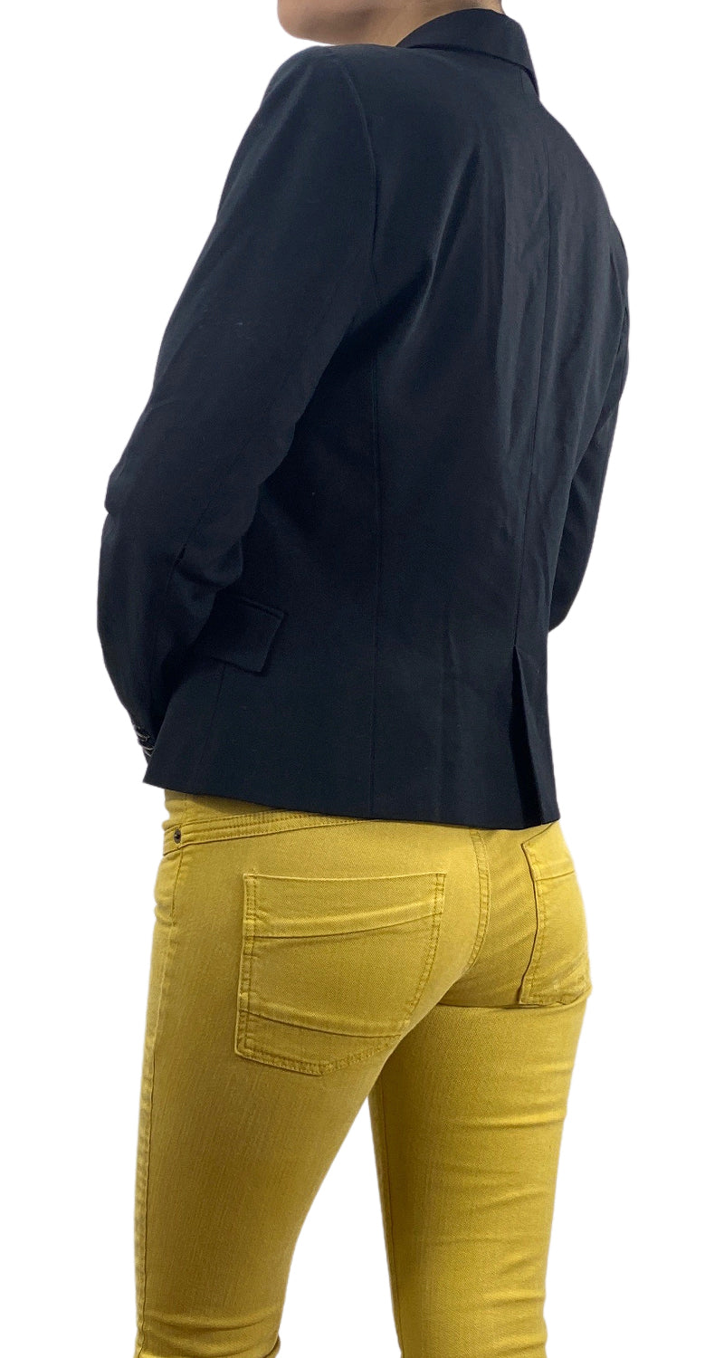 Blazer color Negro con dos bolsillos y botón con diseño en delantero.
