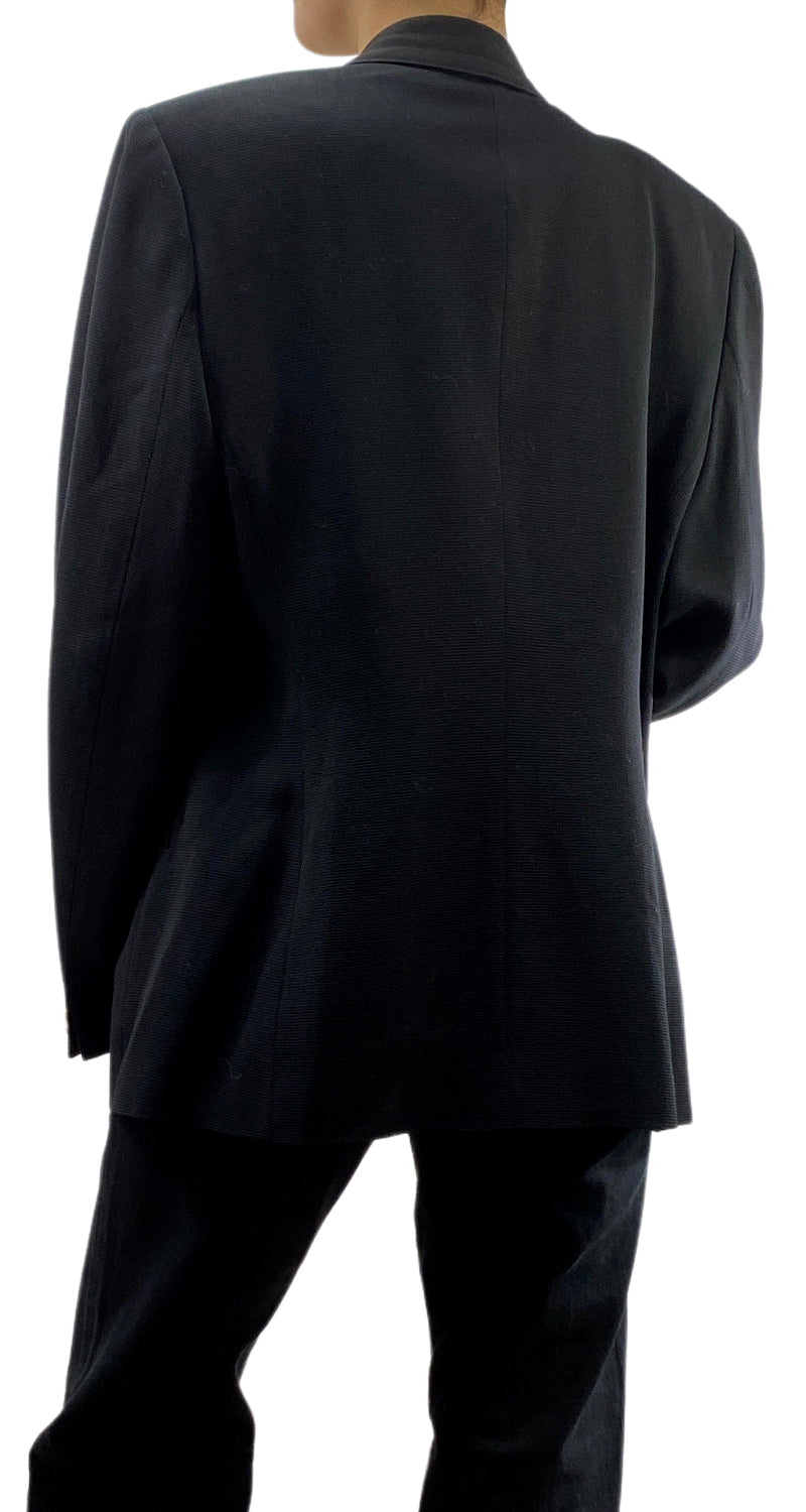 Blazer color Negro de lana con diseño de hombreras y botones en forma de flores. Le faltan aplicaciones de strass en botones. Talla 44 de la marca.