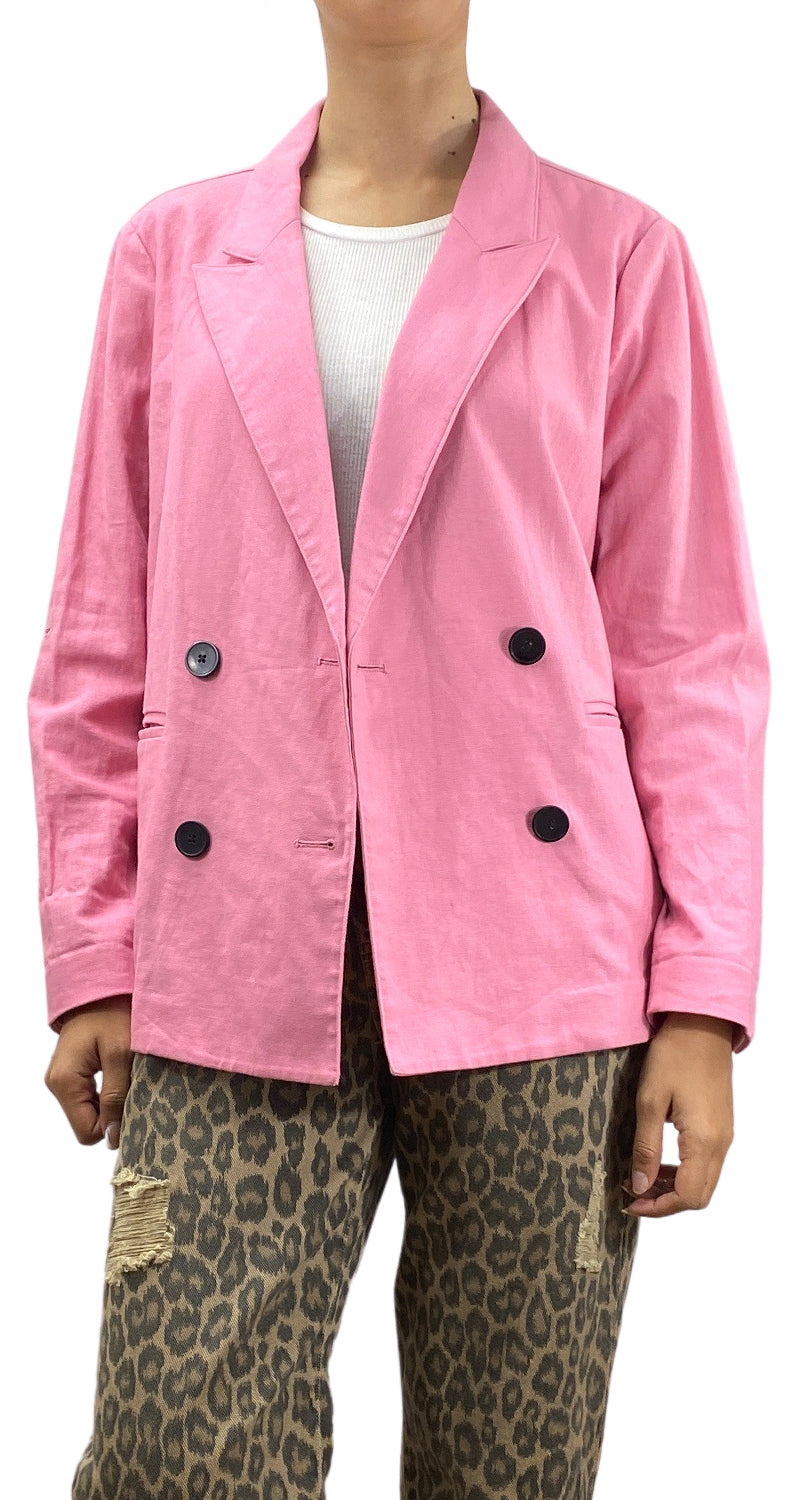 Blazer Rosado de lino con botones Negros. Marca Violeta by Mango.