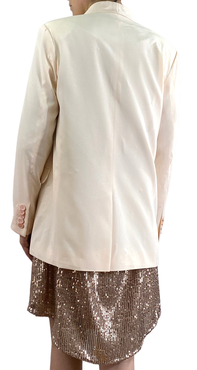 Blazer de Seda en color Rosa Pastel, un botón en delantero y dos bolsillos.
