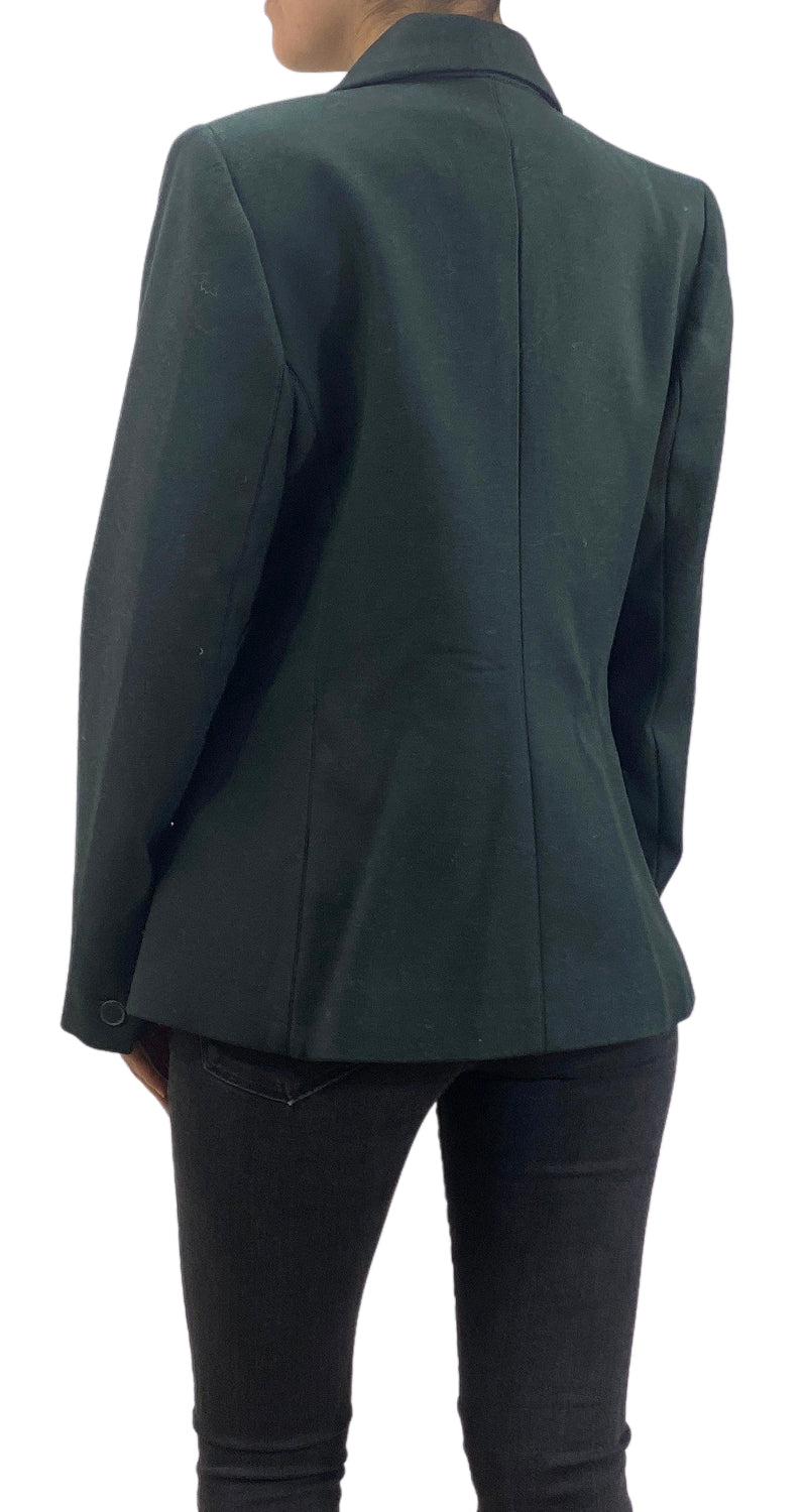 Blazer color Verde con botones en delantero, detalles plisados y solapas.