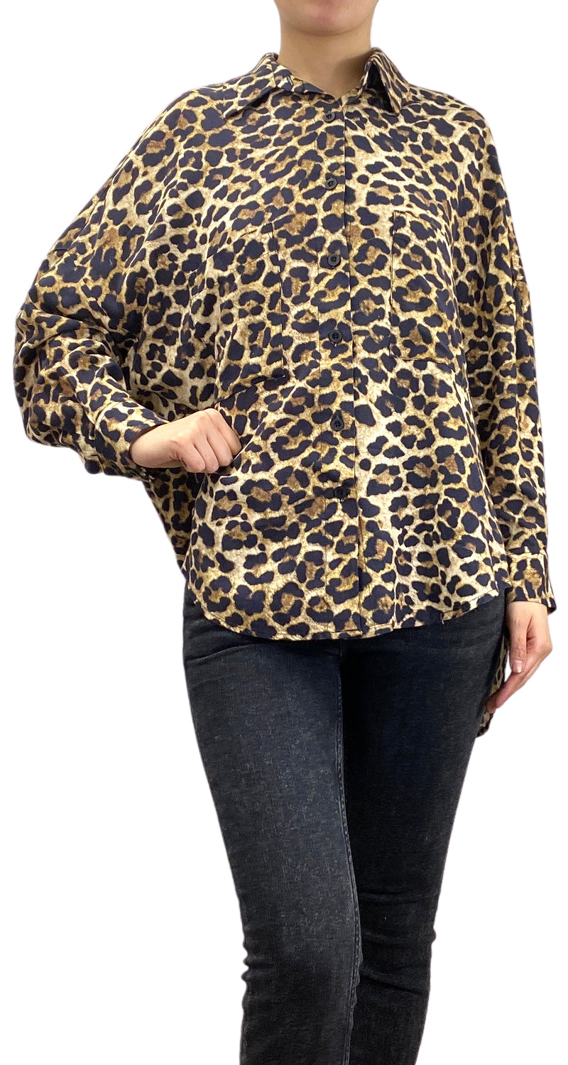 Blusa Animal Print con botones frontales y bolsillos sobrepuestos. Talla OS de la marca.