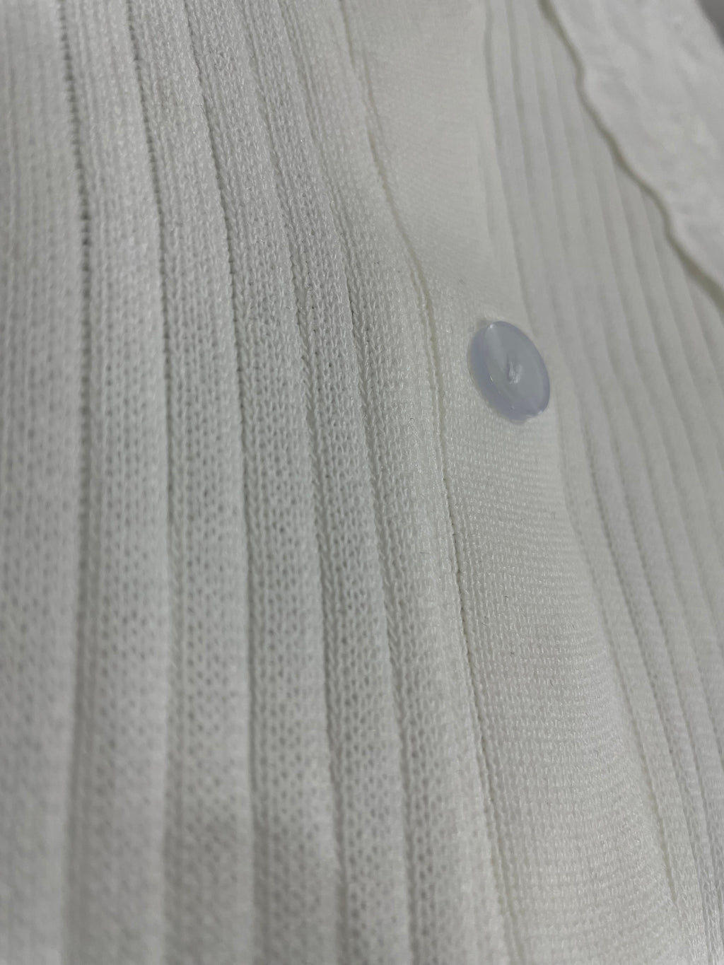 Blusa fruncida elasticada en color Blanco, vuelo en cuello con diseño bordado, botones en delantero. No especifica talla.