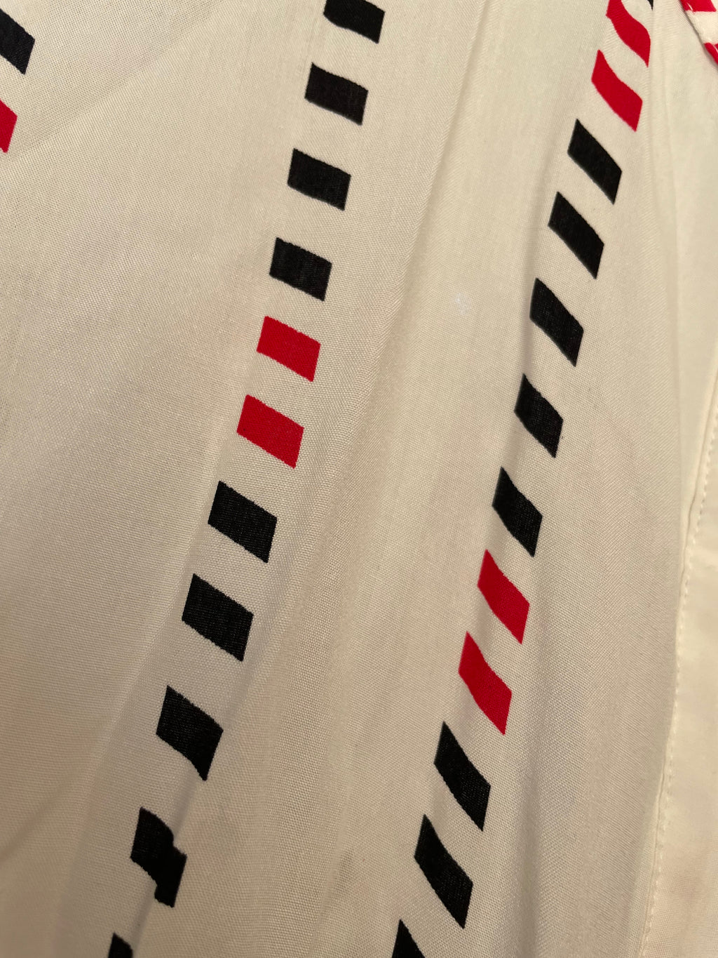 Blusa Blanca con estampado y botones frontales. El producto no especifica talla.