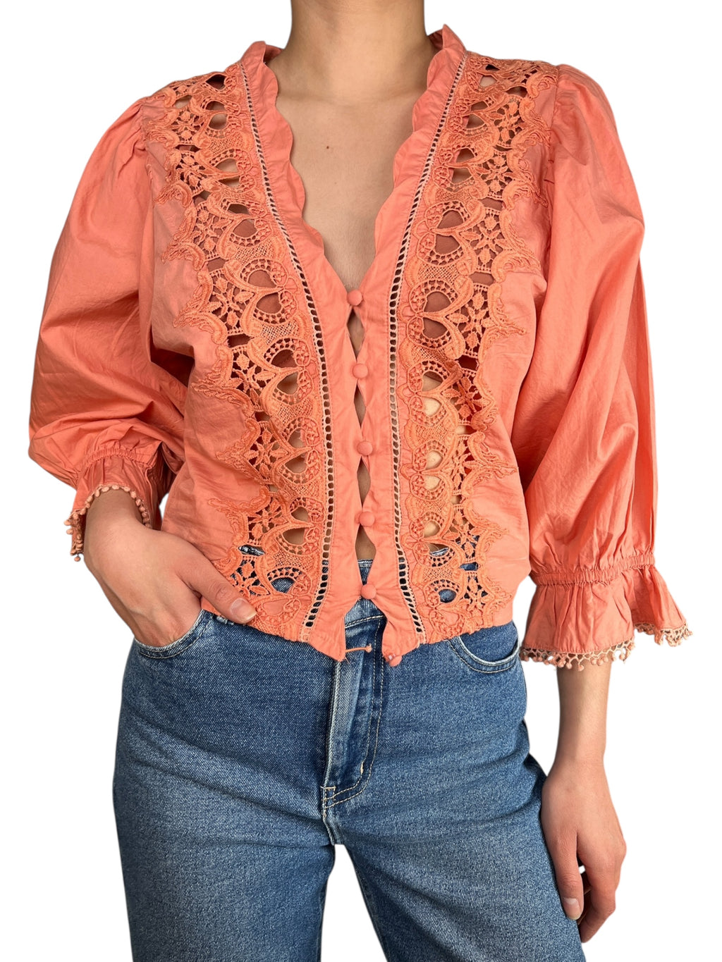 Altura modelo 1,62 cm. Presenta detalle en ojal de botón frontal.