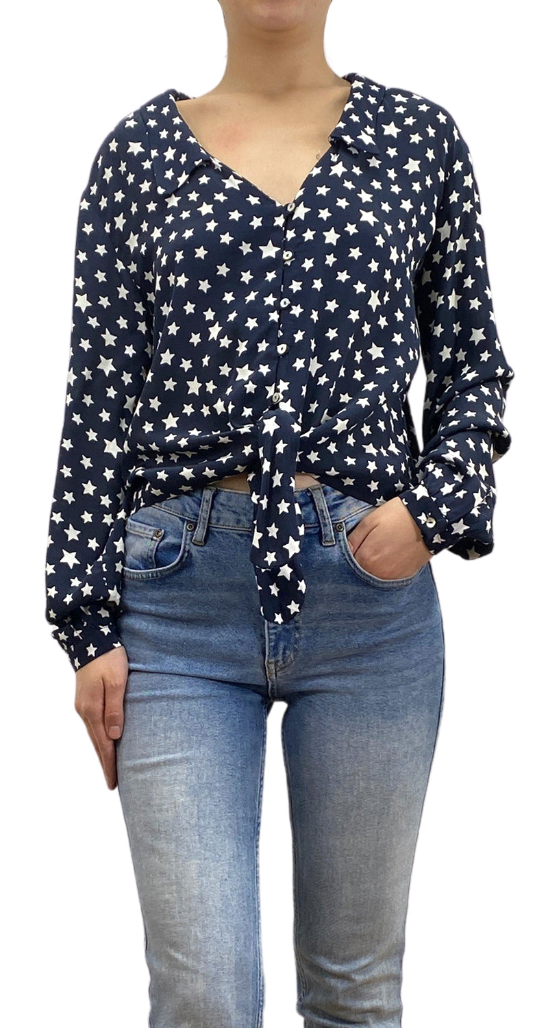 Blusa color Azul marino con estampado de estrellas y botones en delantero.