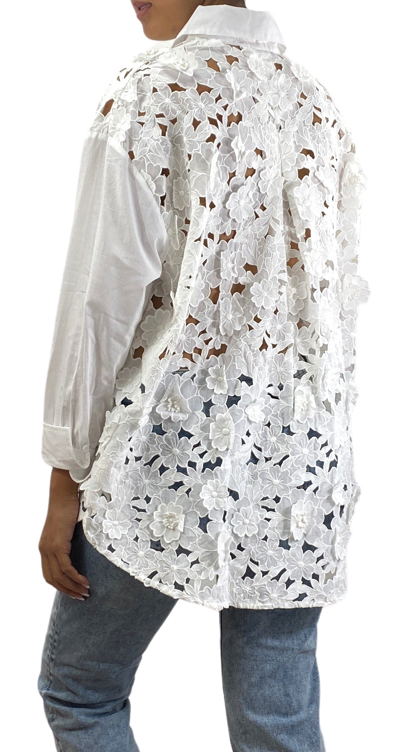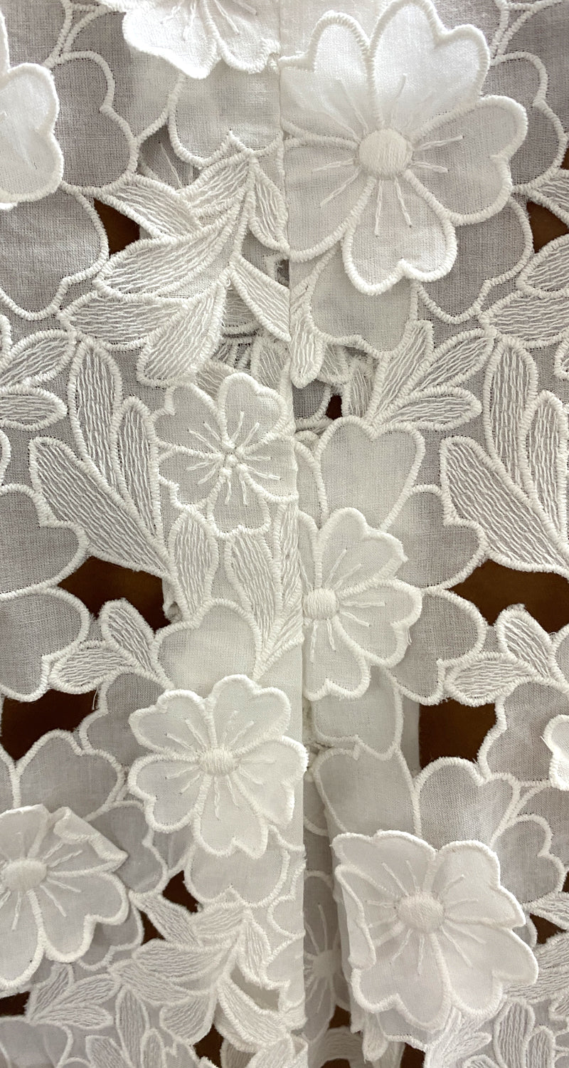 Blusa color Blanco con diseño guipiur y botones frontales. Talla 3 de la marca.