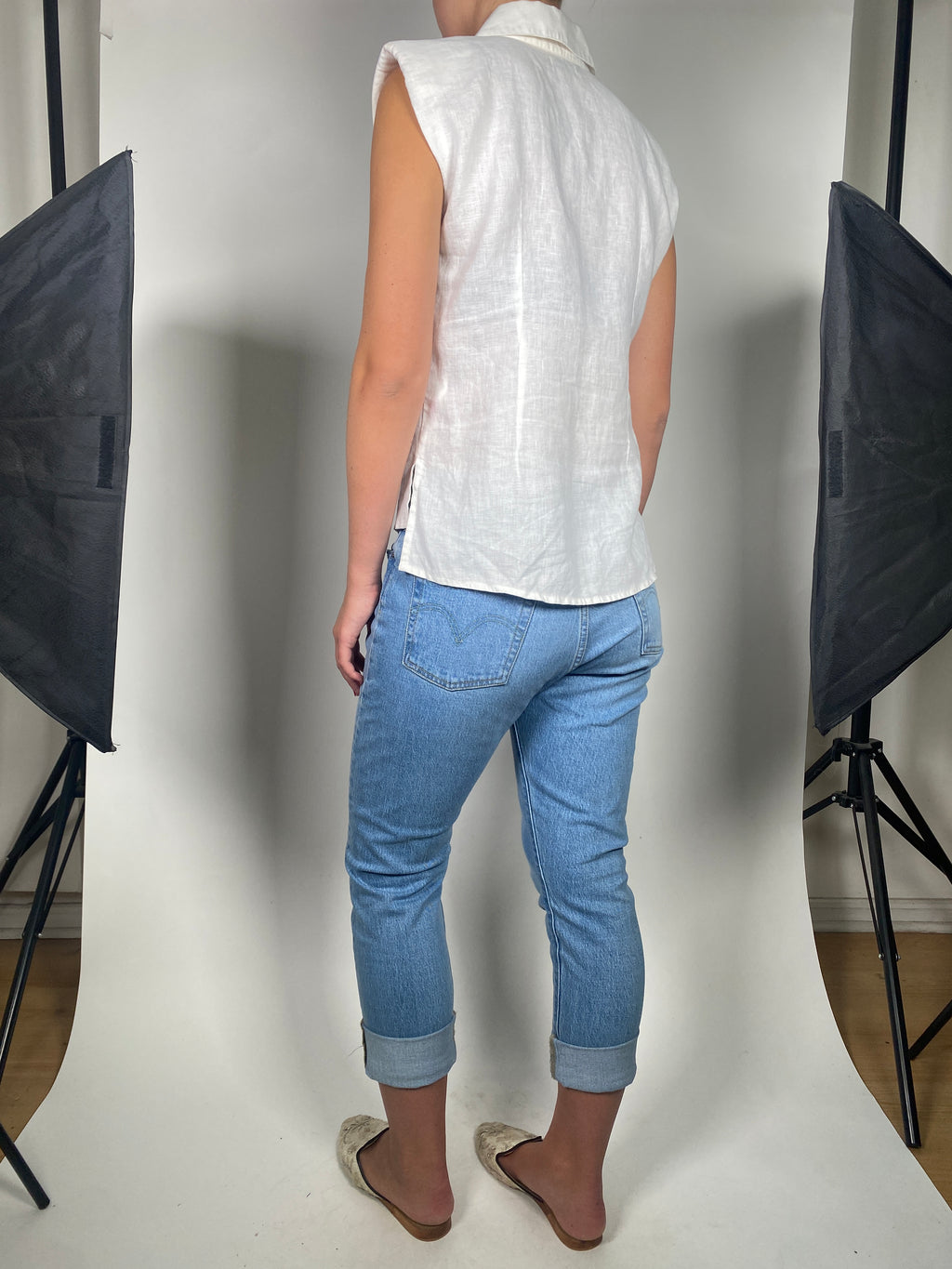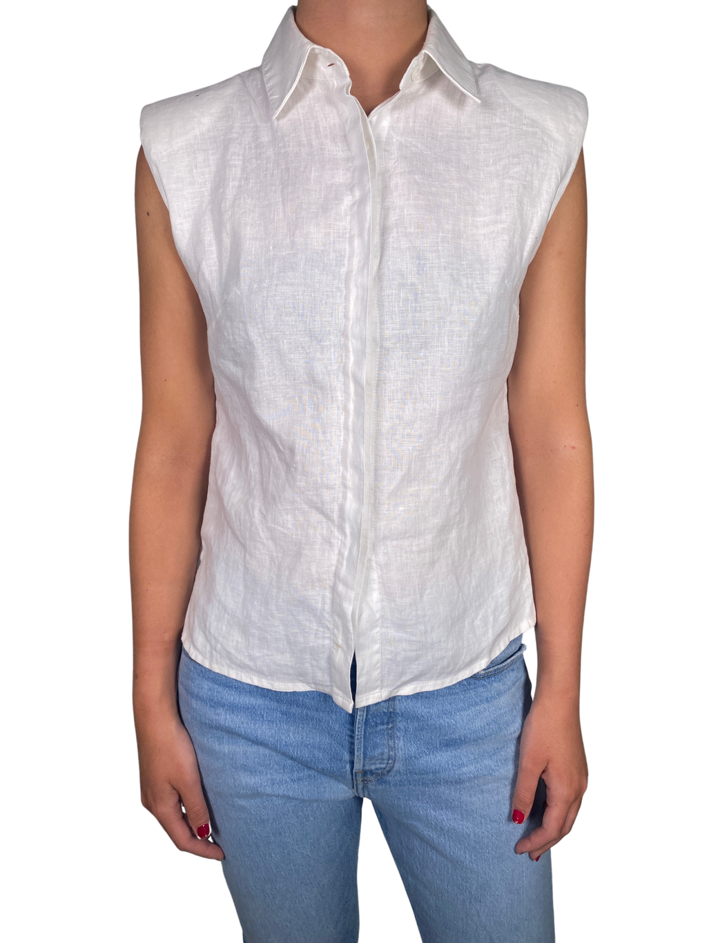 Blusa Lino Blanco Con Hombreras