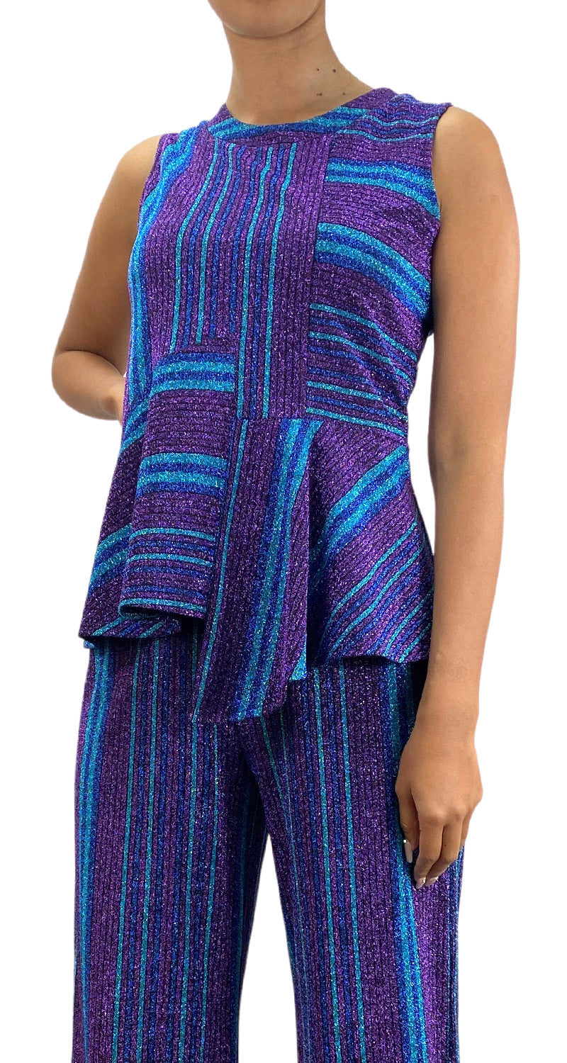 Blusa Multicolor cuello redondo con detalle de fibras metalizadas. Talla 3 de la marca.