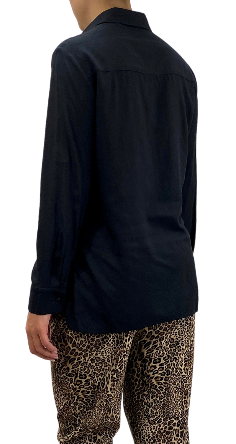Blusa color Negro de manga larga. botones frontales y lazo.