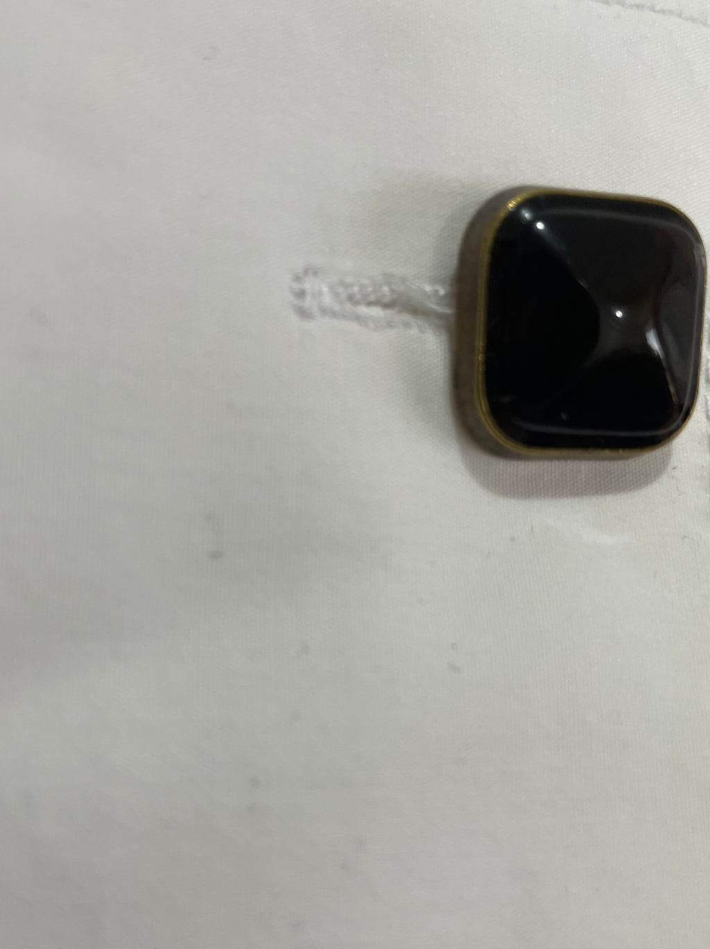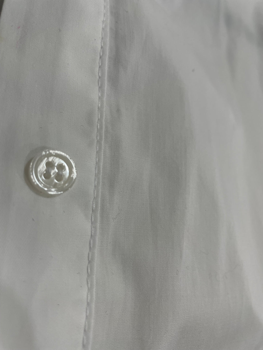 Blusa larga estilo Oversize color Blanco con botones en delantero, abertura en laterales y mangas 3/4 con botón de diseño color Negro.