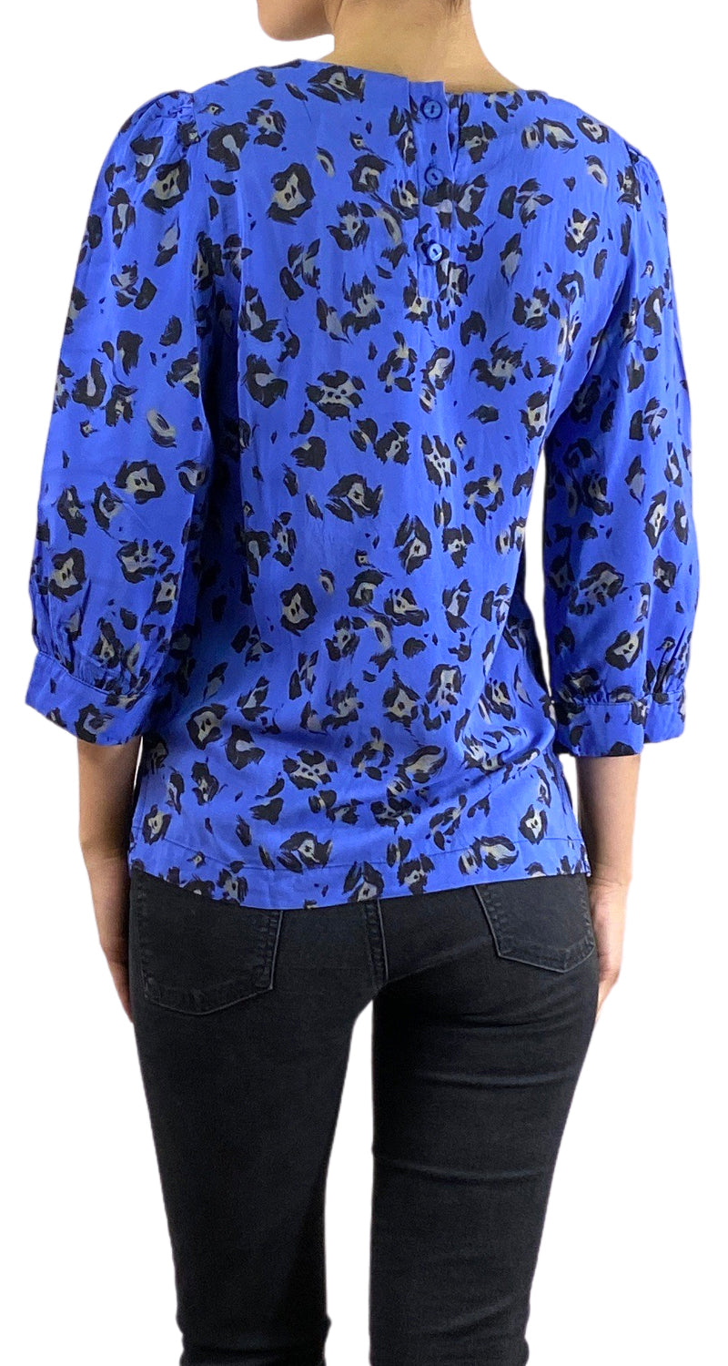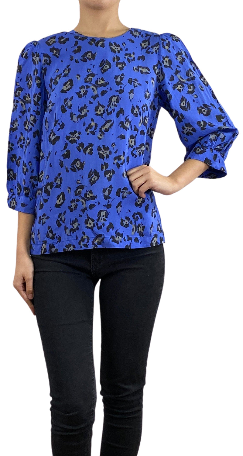 Blusa color Azul con estampado y cuello redondo.
