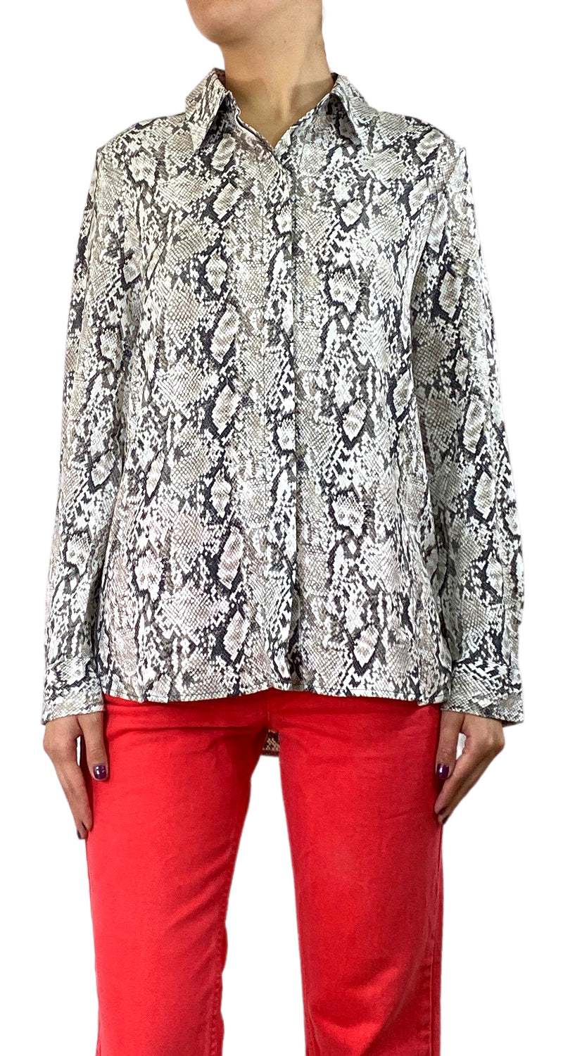 Blusa con estampado reptil, de manga larga y botones en delantero.