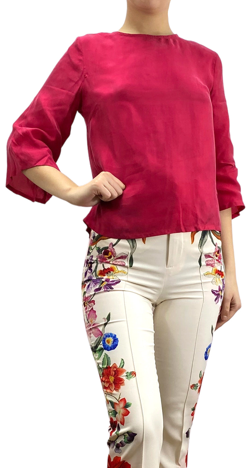 Blusa en color Rojo satinado, mangas 3/4 y abertura en espalda.