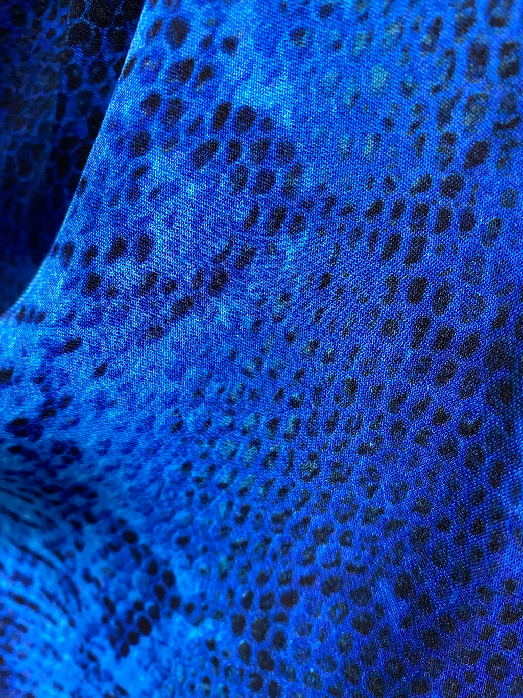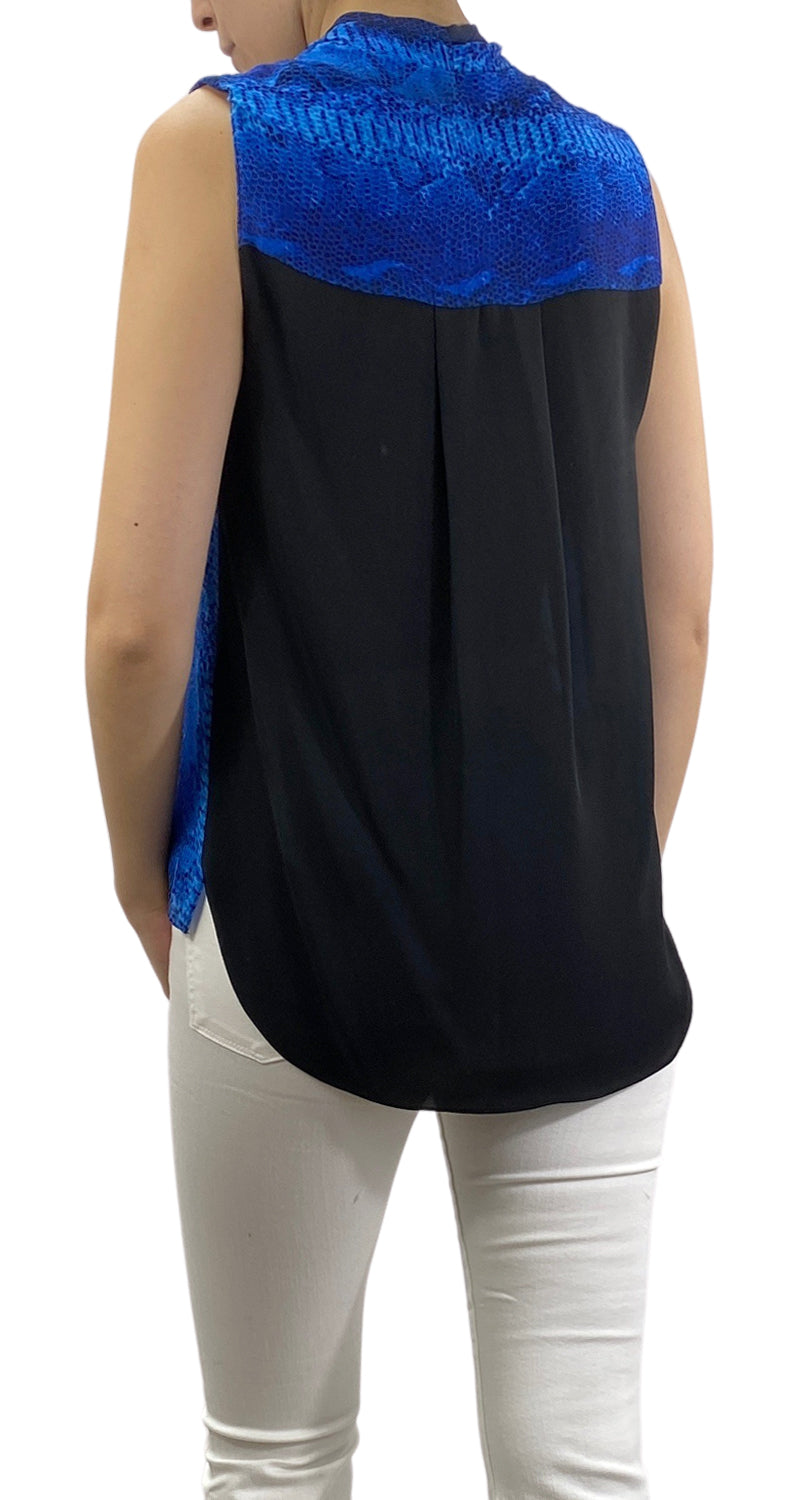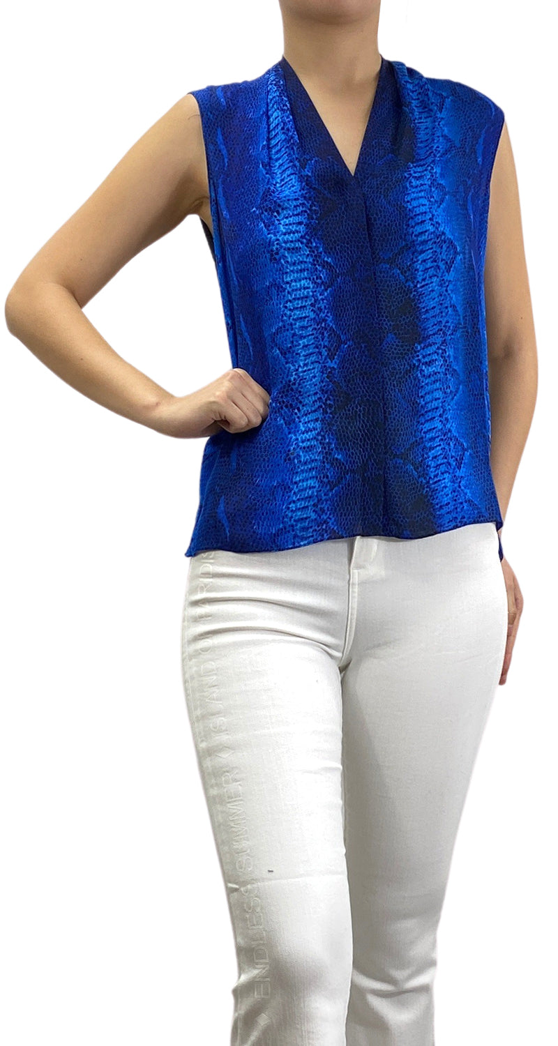 Blusa color Azul de seda con botones frontales y diseño estilo snake.