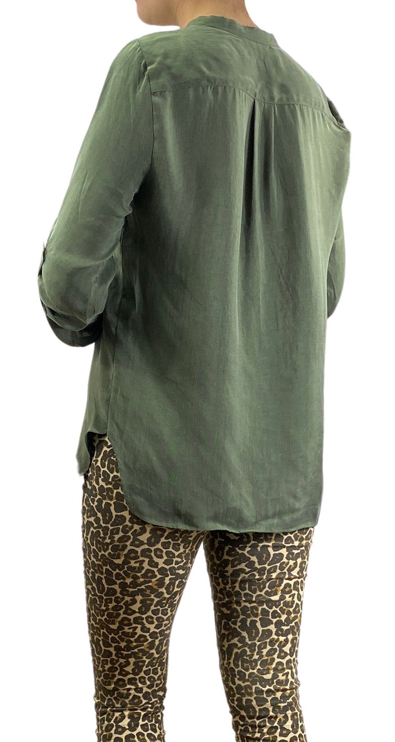 Blusa color Verde con bolsillos frontales.