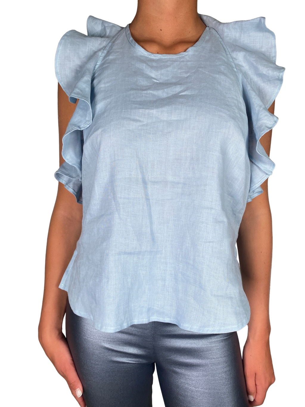 Blusa Vuelos Hombro Celeste