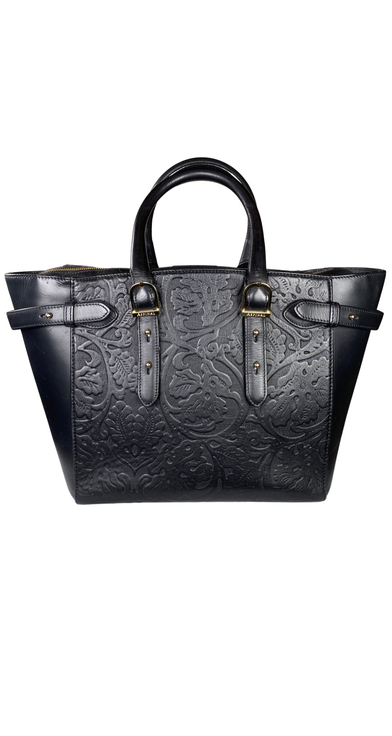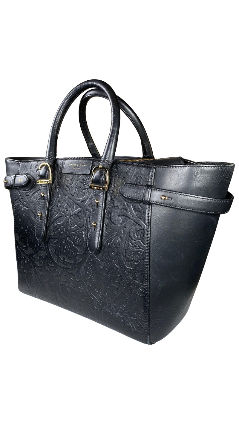 Se siente como cuero, presenta leves signos de uso en base y bordes. Medidas: 44 cm x 28 cm x 14 cm. No incluye dust bag. Tiene iniciales en parte frontal.